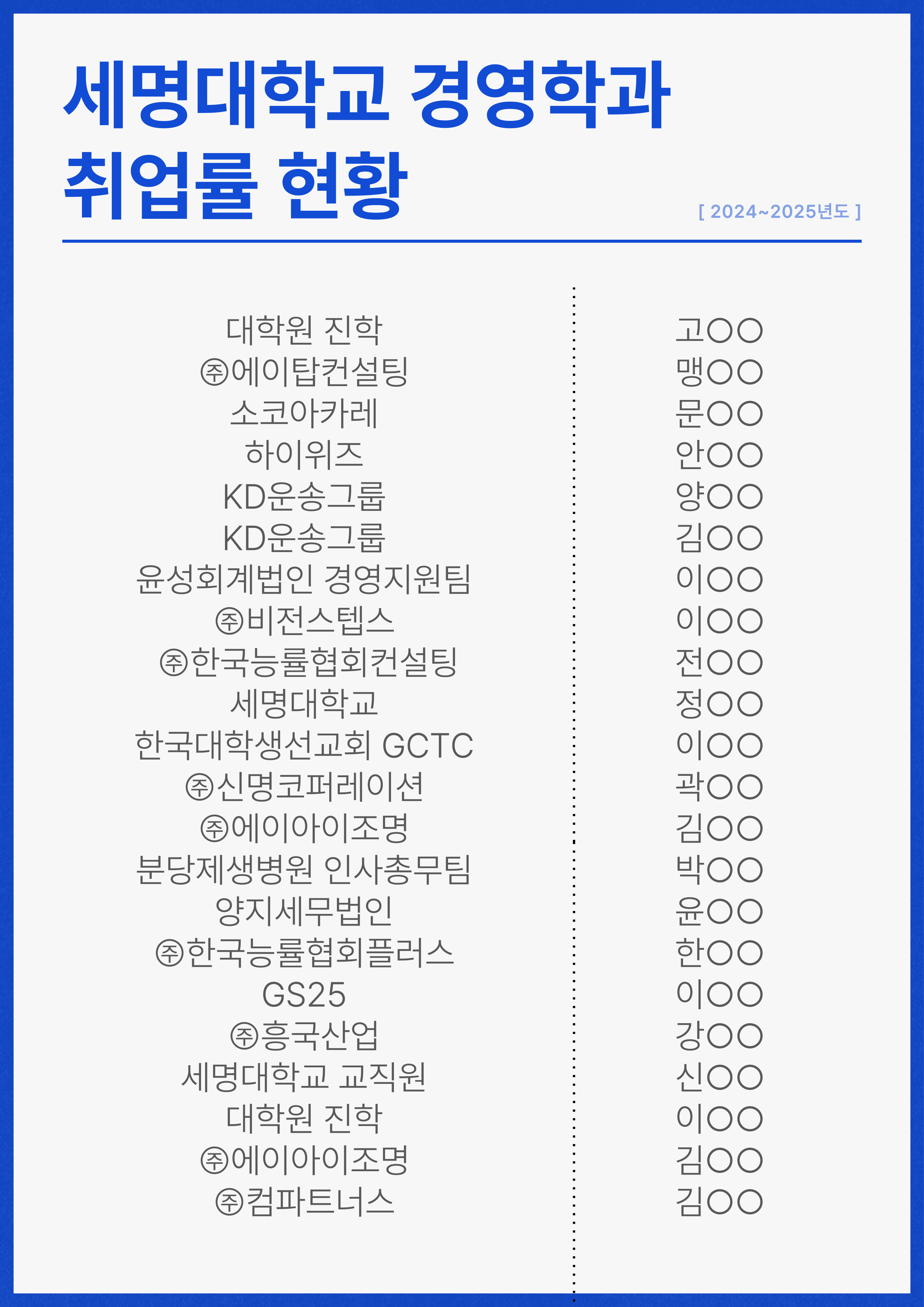 본문 시작 홈으로 학생진로 학과소개 학생진로 교과과정 커뮤니티 학과 SNS 홈페이지가이드 취업률&졸업생 현황 진로테크 취업률&졸업생 현황 취업정보 취업률&졸업생 현황 페이스북 트위터 프린트 취업률 졸업생 현황 담당부서 : 경영학과 담당자 : - 연락처 : 043-649-1766 최종수정일 : 2025-07-01 만족도조사 만족도 조사 이 페이지에서 제공하는 정보에 대하여 만족하시나요? 매우만족 만족 보통 불만족 매우불만족