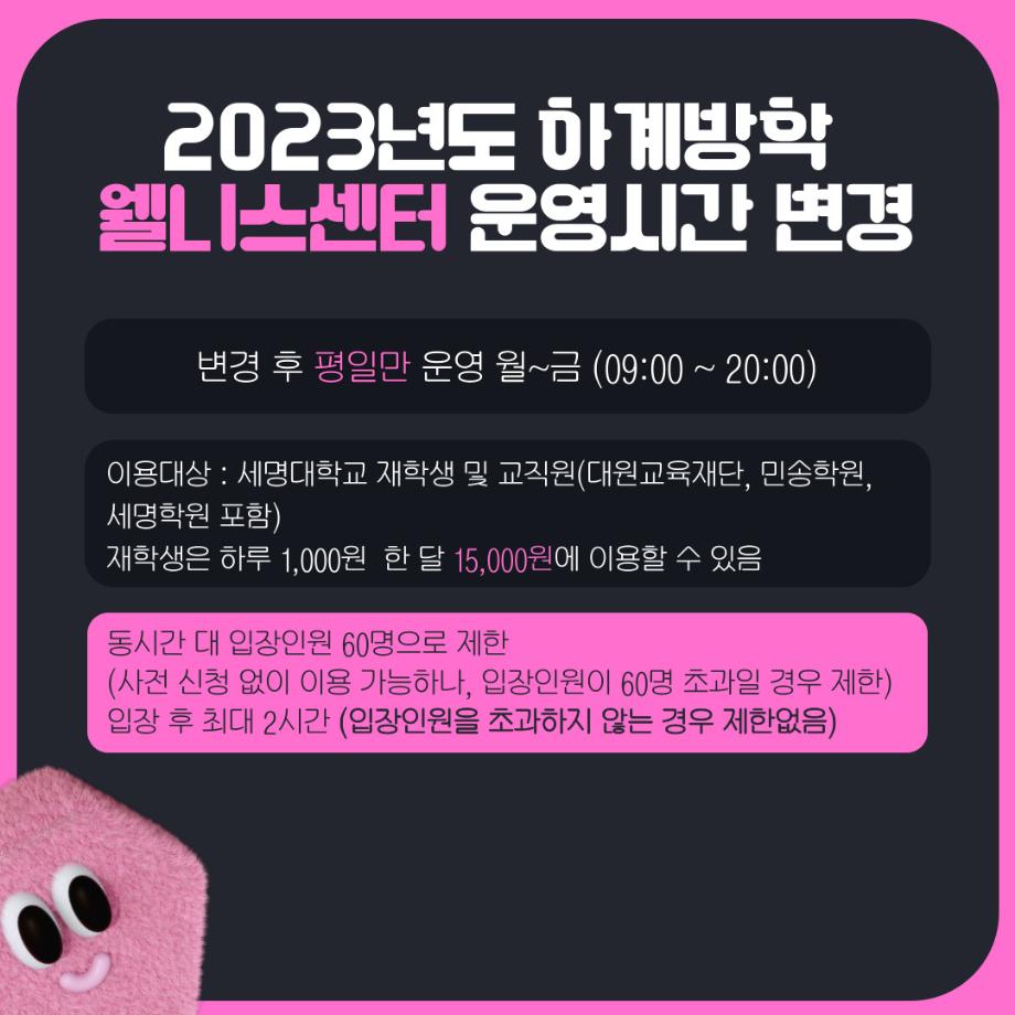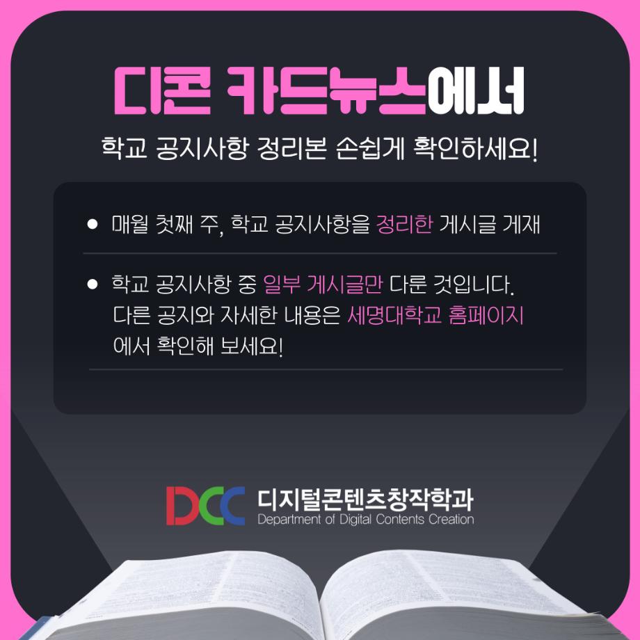본문 시작 홈으로 MCC News 학과소개 교수소개 학과과정 MCC News MCC SNS 홈페이지가이드 학과 및 재학생 학과 및 재학생 교수 및 졸업생 미디어 정보통 학과 및 재학생 페이스북 트위터 프린트 세명대학교 홈페이지 공지사항 정리 디지털콘텐츠창작학과 3371 2023-07-07 매번 홈페이지 들어가기 귀찮은 분들을 위해 세명대학교 공지사항 요약본을 준비했습니다! 유익한 정보 얻어가시기 바랍니다! *공지사항 중 일부 게시글만 다룬 것입니다. 다른 공지사항이나 자세한 내용은 학교 홈페이지에서 확인 바랍니다 목록 이전🏫 강의실 Before & After 🏫 다음 🍭 오늘의 디콘 17탄 🍭 담당부서 : 미디어콘텐츠창작학과 담당자 : - 연락처 : 043-649-1741 최종수정일 : 2024-10-26 만족도조사 만족도 조사 이 페이지에서 제공하는 정보에 대하여 만족하시나요? 매우만족 만족 보통 불만족 매우불만족