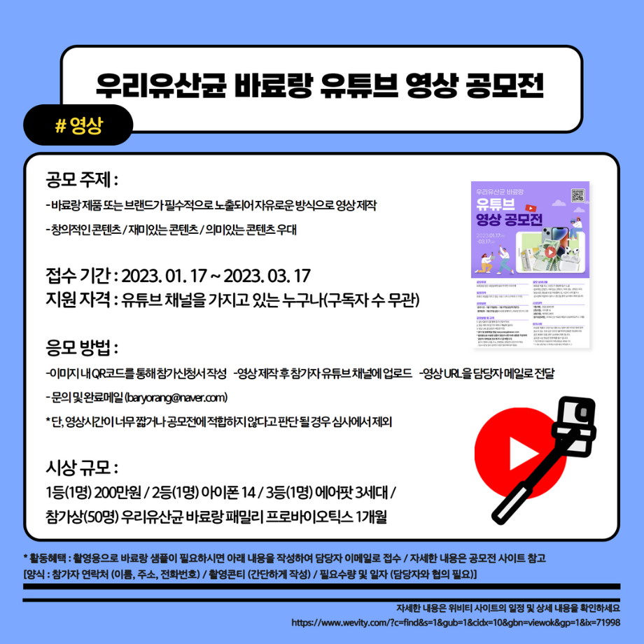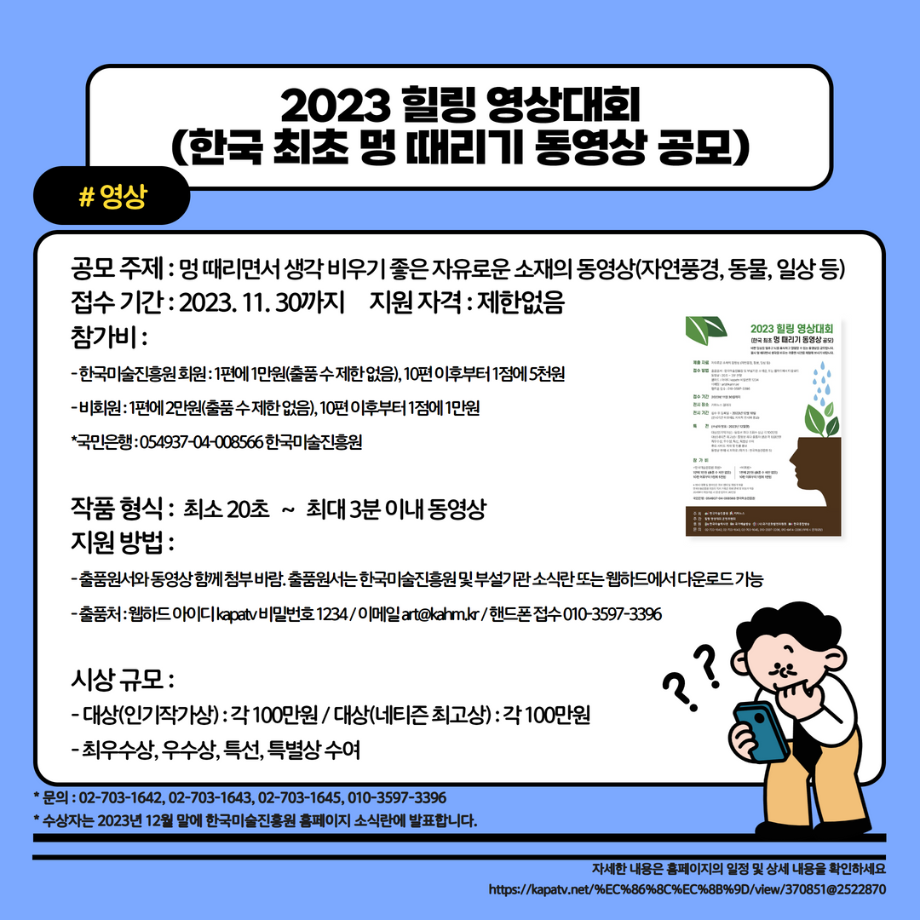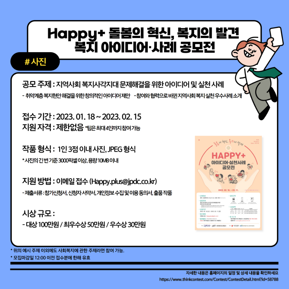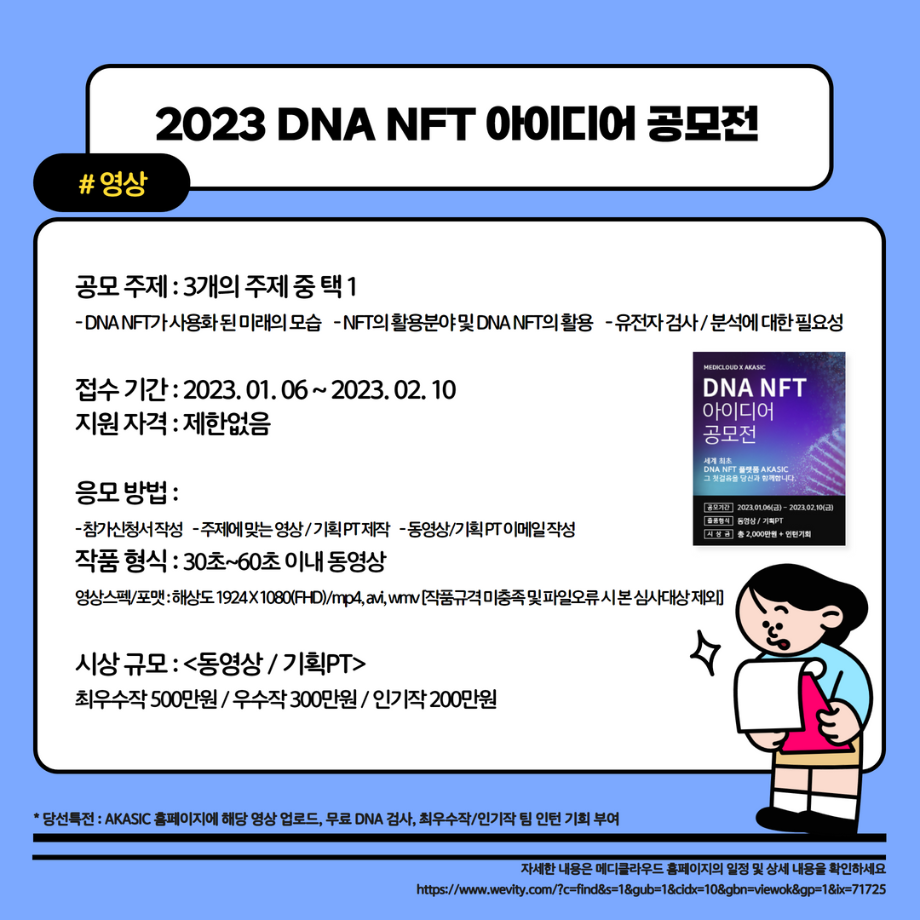 본문 시작 홈으로 MCC News 학과소개 교수소개 학과과정 MCC News MCC SNS 홈페이지가이드 학과 및 재학생 학과 및 재학생 교수 및 졸업생 미디어 정보통 학과 및 재학생 페이스북 트위터 프린트 2023학년도 교외 공모전을 알려드려요 디지털콘텐츠창작학과 4290 2023-02-01 2023학년도 영상, 디자인, 사진 분야의 공모전을 알려드립니다! 겨울방학 동안 다양한 공모전에 참여하며 경험을 쌓는 것은 어떨까요? 목록 이전세명인이라면 알아야 할 꿀팁 앱 다음 23학번 신입생들을 위한 디콘창 Q&A❓ 담당부서 : 미디어콘텐츠창작학과 담당자 : - 연락처 : 043-649-1741 최종수정일 : 2024-10-26 만족도조사 만족도 조사 이 페이지에서 제공하는 정보에 대하여 만족하시나요? 매우만족 만족 보통 불만족 매우불만족