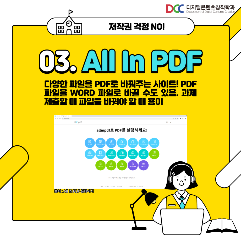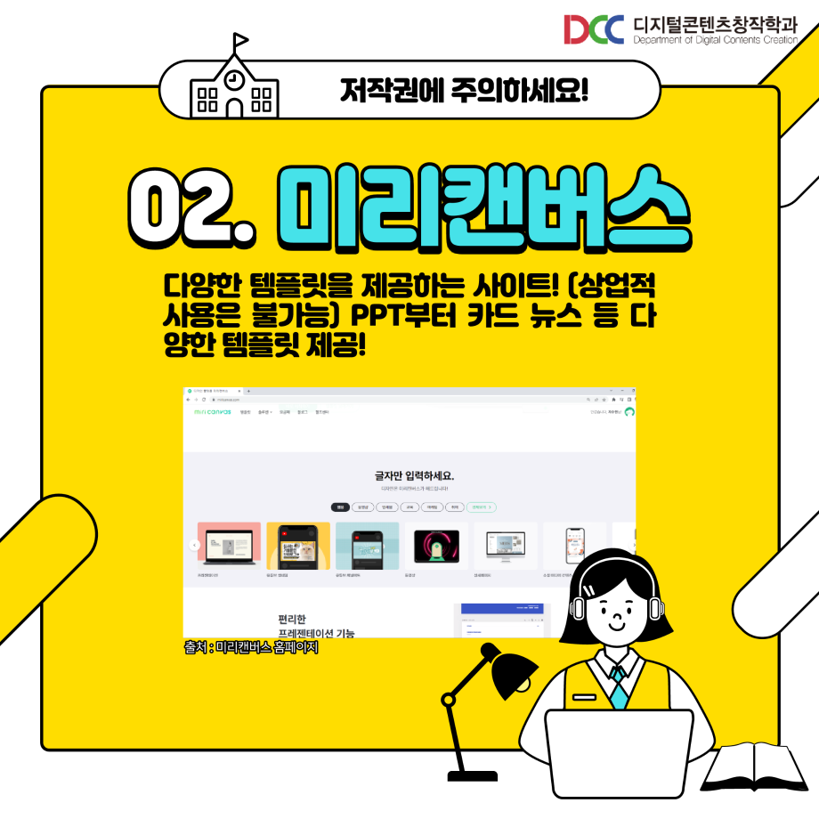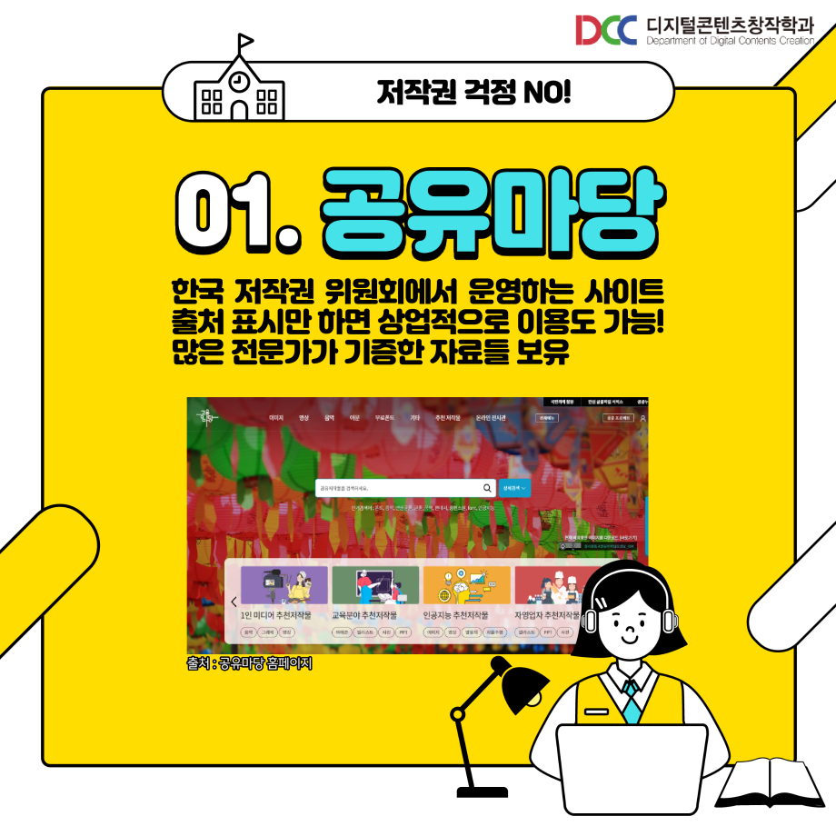 본문 시작 홈으로 MCC News 학과소개 교수소개 학과과정 MCC News MCC SNS 홈페이지가이드 학과 및 재학생 학과 및 재학생 교수 및 졸업생 미디어 정보통 학과 및 재학생 페이스북 트위터 프린트 과제 할 때 쓰기 좋은 사이트 디지털콘텐츠창작학과 4728 2023-06-02 과제할 때 사용하기 좋은 사이트를 공유해드려요! 저작권 걱정 없는 사이트들을 정리해봤습니다! 학우 분들의 과제 만점을 위해! 저작권 걱정 없는 사이트를 확인해보세요 :) 목록 이전제11회 24시간 필름페스티벌 엔딩 영상 다음 🍭 오늘의 디콘 15탄 🍭 담당부서 : 미디어콘텐츠창작학과 담당자 : - 연락처 : 043-649-1741 최종수정일 : 2024-10-26 만족도조사 만족도 조사 이 페이지에서 제공하는 정보에 대하여 만족하시나요? 매우만족 만족 보통 불만족 매우불만족