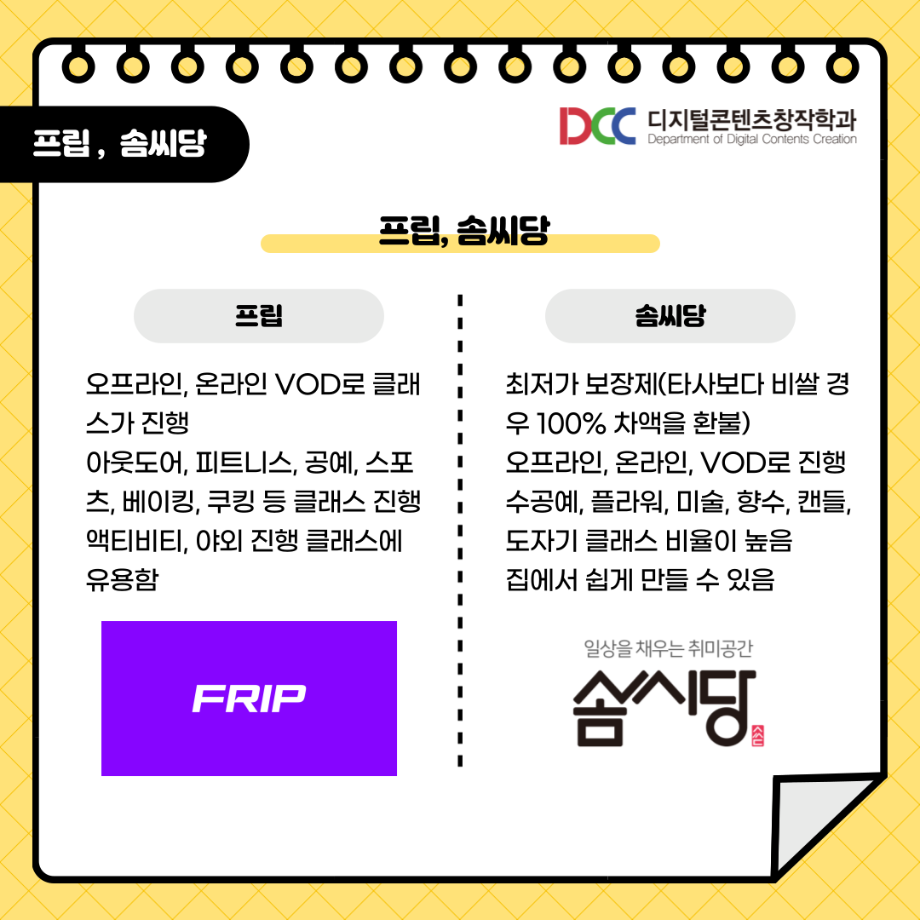 본문 시작 홈으로 MCC News 학과소개 교수소개 학과과정 MCC News MCC SNS 홈페이지가이드 학과 및 재학생 학과 및 재학생 교수 및 졸업생 미디어 정보통 학과 및 재학생 페이스북 트위터 프린트 📚여름방학 자기계발 플랫폼📚 디지털콘텐츠창작학과 3870 2023-07-14 여름방학동안 학우분들의 자기계발을 도와줄 수 있는 플랫폼들을 소개해드려요! 다양한 플랫폼을 이용하며 스펙과 경험을 쌓을 수 있는 기회를 잡아보는 건 어떨까요?😄 목록 이전🍭 오늘의 디콘 17탄 🍭 다음 디콘창이 추천하는 영화 추천 6선 4탄 담당부서 : 미디어콘텐츠창작학과 담당자 : - 연락처 : 043-649-1741 최종수정일 : 2024-10-26 만족도조사 만족도 조사 이 페이지에서 제공하는 정보에 대하여 만족하시나요? 매우만족 만족 보통 불만족 매우불만족