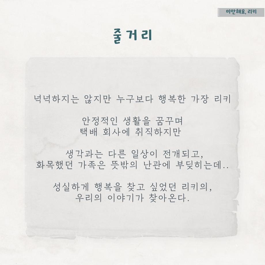 본문 시작 홈으로 MCC News 학과소개 교수소개 학과과정 MCC News MCC SNS 홈페이지가이드 학과 및 재학생 학과 및 재학생 교수 및 졸업생 미디어 정보통 학과 및 재학생 페이스북 트위터 프린트 디콘창이 추천하는 영화 추천 6선 5탄 디지털콘텐츠창작학과 4315 2023-07-21 세명대학교 디지털콘텐츠창작학과가 추천하는 영화 추천 6선 시리즈 다섯 번째입니다! 5탄의 추천 영화는 '미안해요 리키'입니다. 영화 추천 시리즈에는 추천 영화의 줄거리, 스틸컷, 감상 가능한 사이트, 교수님의 한 줄 평까지 볼 수 있습니다. 짧지만 알찬 정보는 담았으니, 다양한 장르의 추천 영화를 감상해 보시고 여러분들의 한 줄 평을 남겨주세요! 영화 추천 6선 시리즈의 마지막인 6탄도 학우분들의 많은 관심 부탁드립니다!❤ 목록 이전🍭 오늘의 디콘 18탄 🍭 다음 학생회가 알려주는 연계전공📚 담당부서 : 미디어콘텐츠창작학과 담당자 : - 연락처 : 043-649-1741 최종수정일 : 2024-10-26 만족도조사 만족도 조사 이 페이지에서 제공하는 정보에 대하여 만족하시나요? 매우만족 만족 보통 불만족 매우불만족