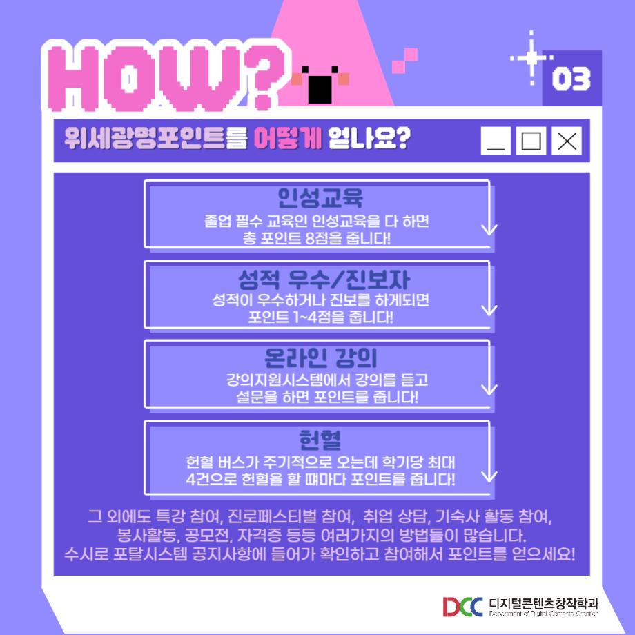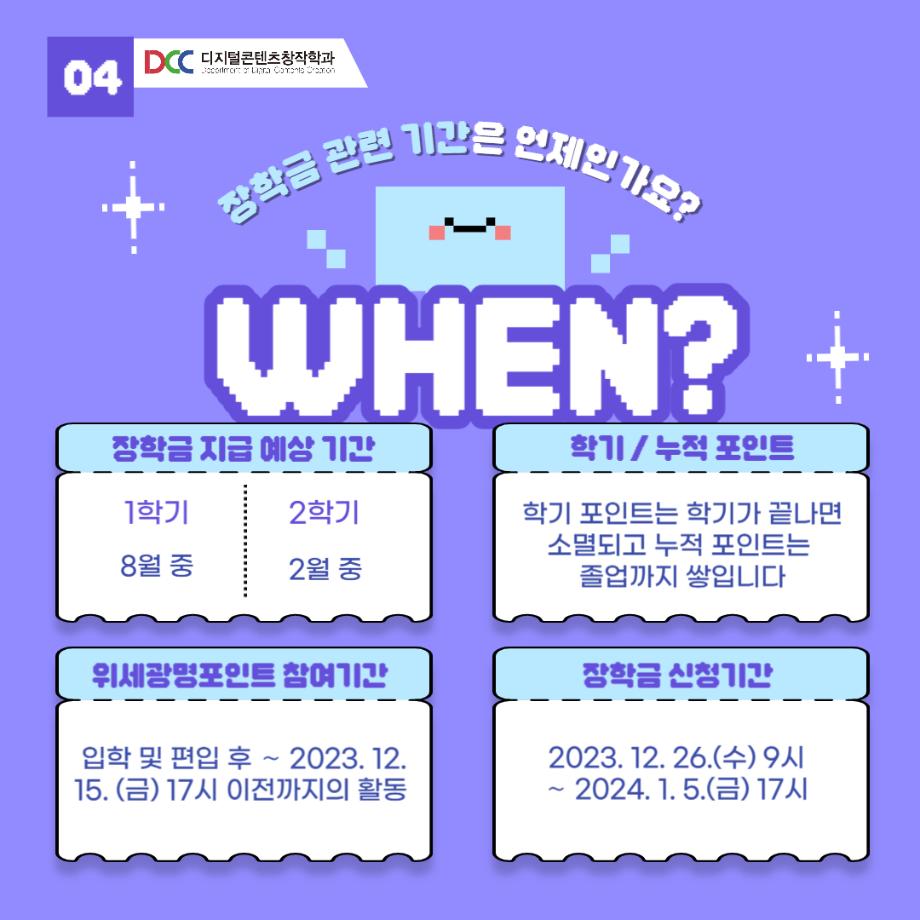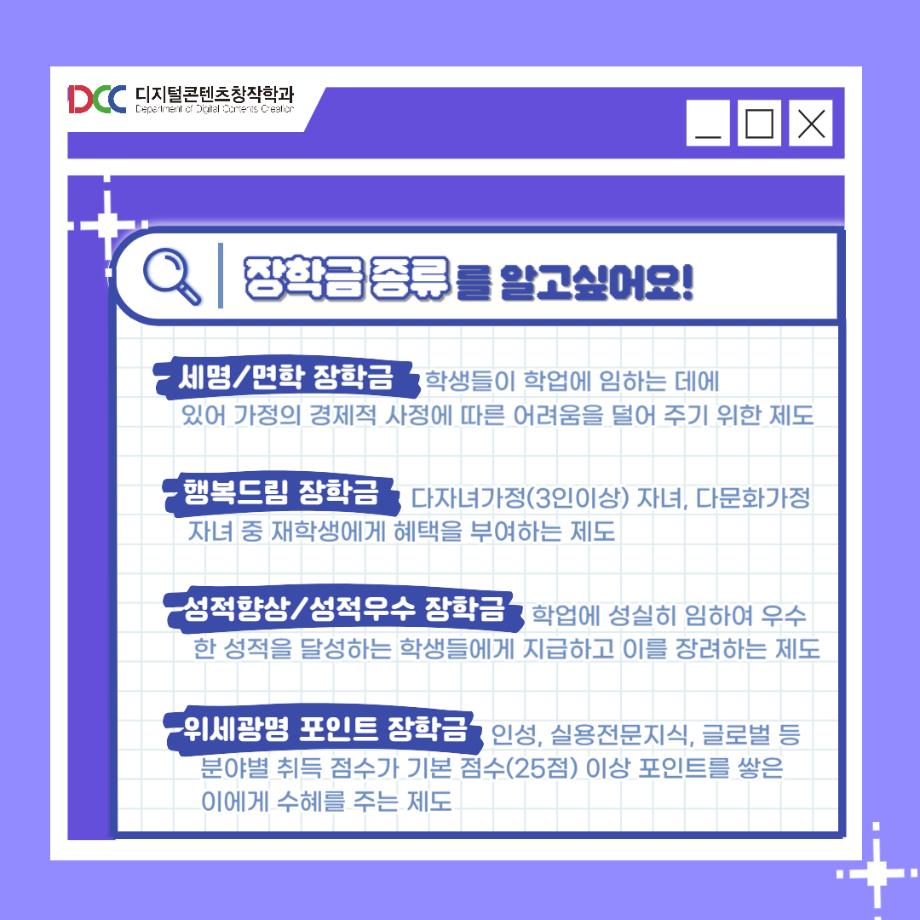 본문 시작 홈으로 MCC News 학과소개 교수소개 학과과정 MCC News MCC SNS 홈페이지가이드 학과 및 재학생 학과 및 재학생 교수 및 졸업생 미디어 정보통 학과 및 재학생 페이스북 트위터 프린트 장학금 받는 꿀팁🎓 디지털콘텐츠창작학과 6048 2023-10-20 장학금 받는 꿀팁🎓 학생회가 알려주는 장학금 받는 꿀팁❗ 장학금 종류뷰터 지급기간까지 알려드려요! 목록 이전학생회가 알려주는 재학생 할인 혜택 다음 디콘창 학생회 소개🤗 담당부서 : 미디어콘텐츠창작학과 담당자 : - 연락처 : 043-649-1741 최종수정일 : 2024-10-26 만족도조사 만족도 조사 이 페이지에서 제공하는 정보에 대하여 만족하시나요? 매우만족 만족 보통 불만족 매우불만족