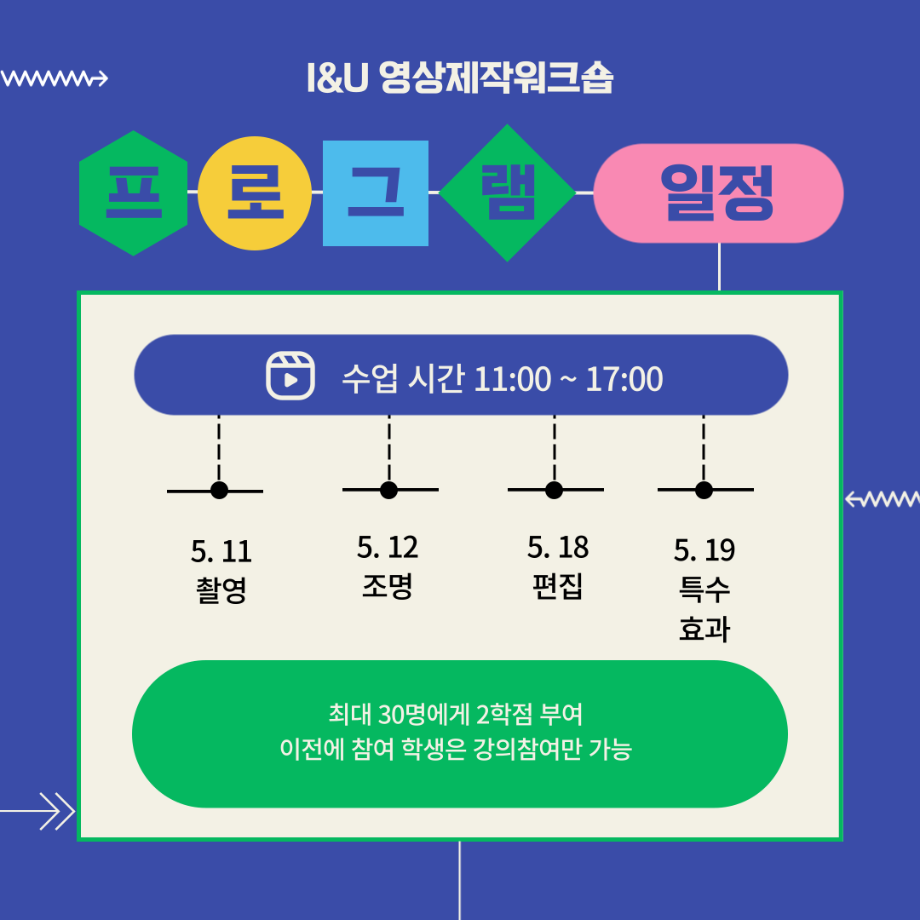 본문 시작 홈으로 MCC News 학과소개 교수소개 학과과정 MCC News MCC SNS 홈페이지가이드 학과 및 재학생 학과 및 재학생 교수 및 졸업생 미디어 정보통 학과 및 재학생 페이스북 트위터 프린트 🚩2024 I&U 프로그램 '영상제작워크숍'🚩 디지털콘텐츠창작학과 2869 2024-05-22 디지털콘텐츠창작학과에서는 2024년 5월 중순 주말동안 '영상제작워크숍'을 성공적으로 진행하였습니다. 이번 워크숍에서는 영상 제작의 모든 과정에 대해 깊이 이해할 수 있는 기회와 동시에 이수한 학생들에게 2학점을 수여하였습니다. 프로그램을 참여한 학생들은 이러한 과정을 학습하고 실습하는 시간을 가지며 본인의 창의적 역량을 키울 수 있었습니다. 참여하신 학생 여러분들 고생하셨습니다. 목록 이전🚩청룡체전 먹거리부스🚩 다음 🌹디지털콘텐츠창작학과 성년의 날 행사🌹 담당부서 : 미디어콘텐츠창작학과 담당자 : - 연락처 : 043-649-1741 최종수정일 : 2024-10-26 만족도조사 만족도 조사 이 페이지에서 제공하는 정보에 대하여 만족하시나요? 매우만족 만족 보통 불만족 매우불만족