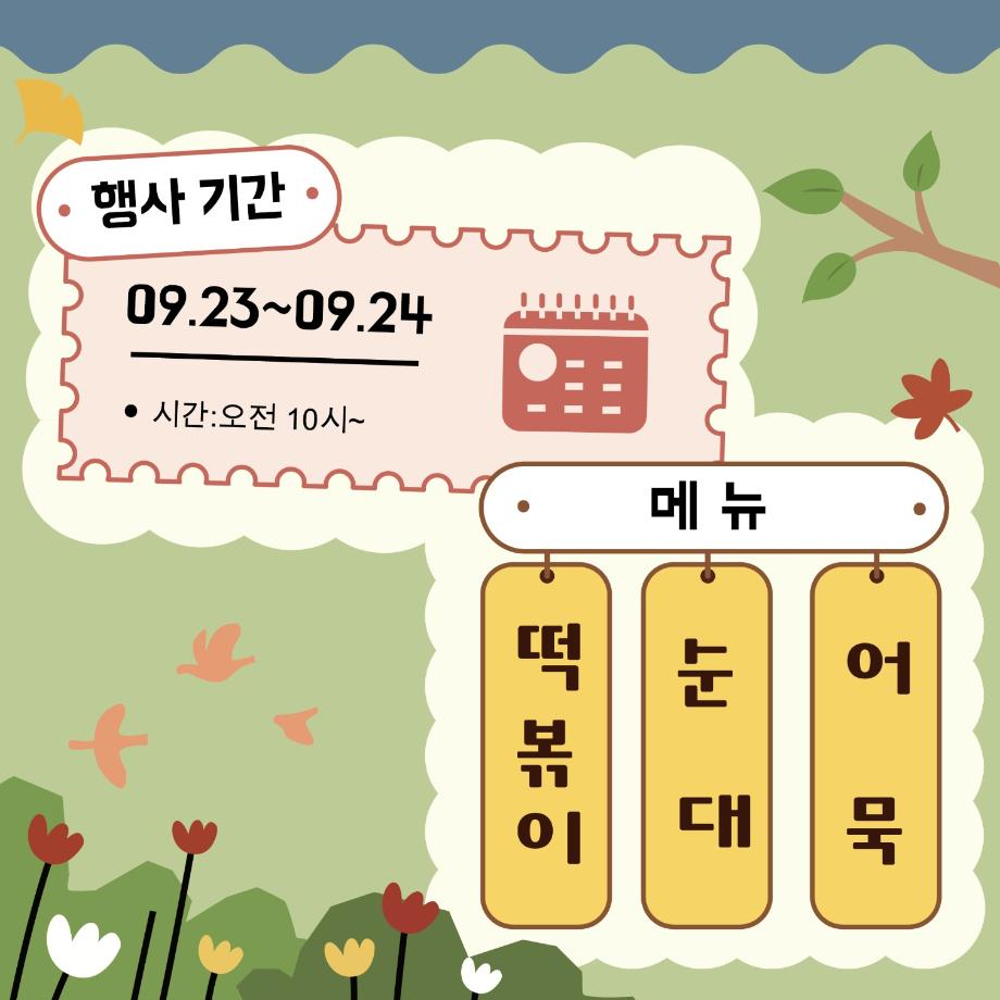 본문 시작 홈으로 MCC News 학과소개 교수소개 학과과정 MCC News MCC SNS 홈페이지가이드 학과 및 재학생 학과 및 재학생 교수 및 졸업생 미디어 정보통 학과 및 재학생 페이스북 트위터 프린트 오랜만에 찾아온 미콘먹거리! 미디어콘텐츠창작학과 2146 2024-09-23 미디어콘텐츠창작학과 학생회에서는 이번 제 32회 청룡축전이 열리는 9월23일, 24일 오전 10시부터 뭐든지 광장에서 먹거리 부스를 오픈합니다! 매콤, 짜장 떡볶이, 어묵꼬치, 순대까지 맛있는 먹거리 가득 있으니 많이 오셔서 한 입 하고 가세요!! 목록 이전2024년 추석맞이 특별 이벤트 다음 2024년도 세명대학교 인문예술대학 문화콘텐츠 창작공모전 개최 담당부서 : 미디어콘텐츠창작학과 담당자 : - 연락처 : 043-649-1741 최종수정일 : 2024-10-26 만족도조사 만족도 조사 이 페이지에서 제공하는 정보에 대하여 만족하시나요? 매우만족 만족 보통 불만족 매우불만족