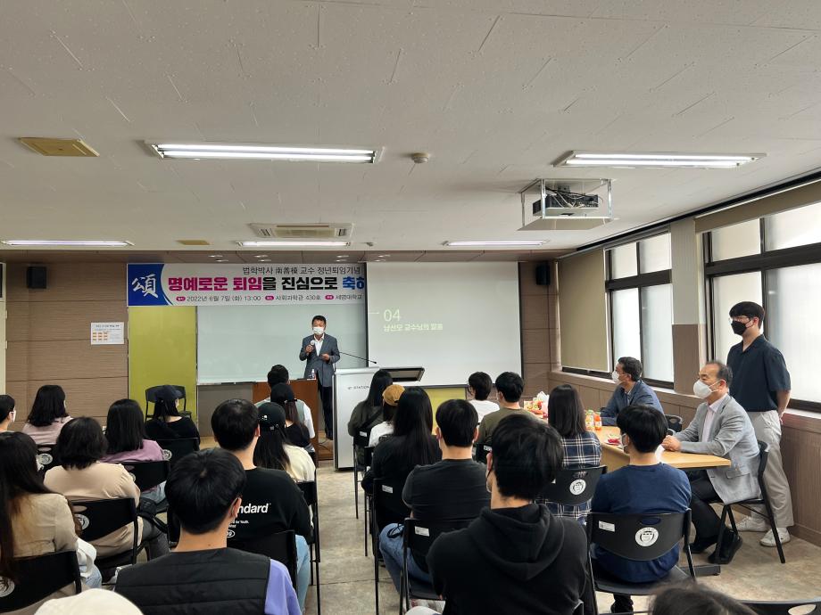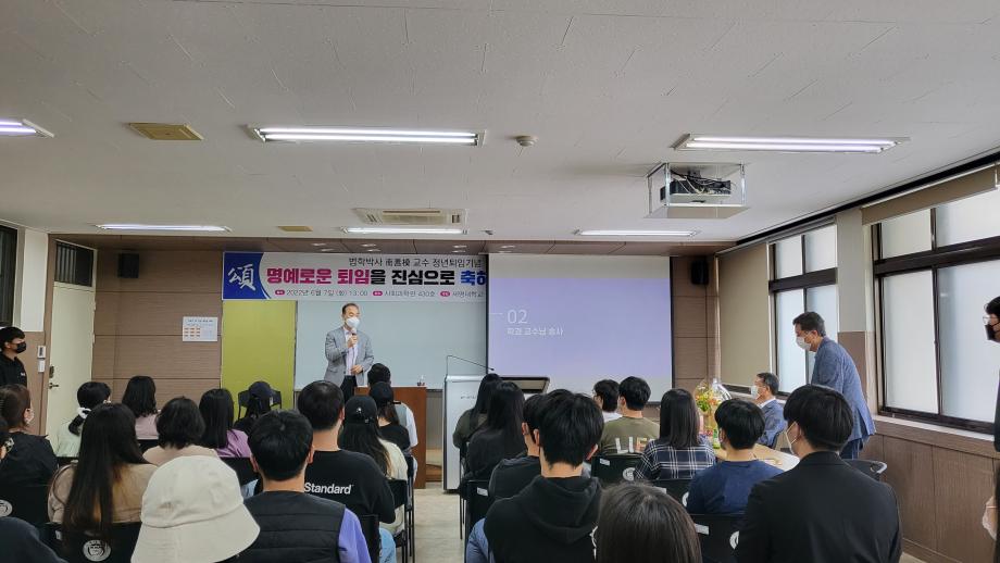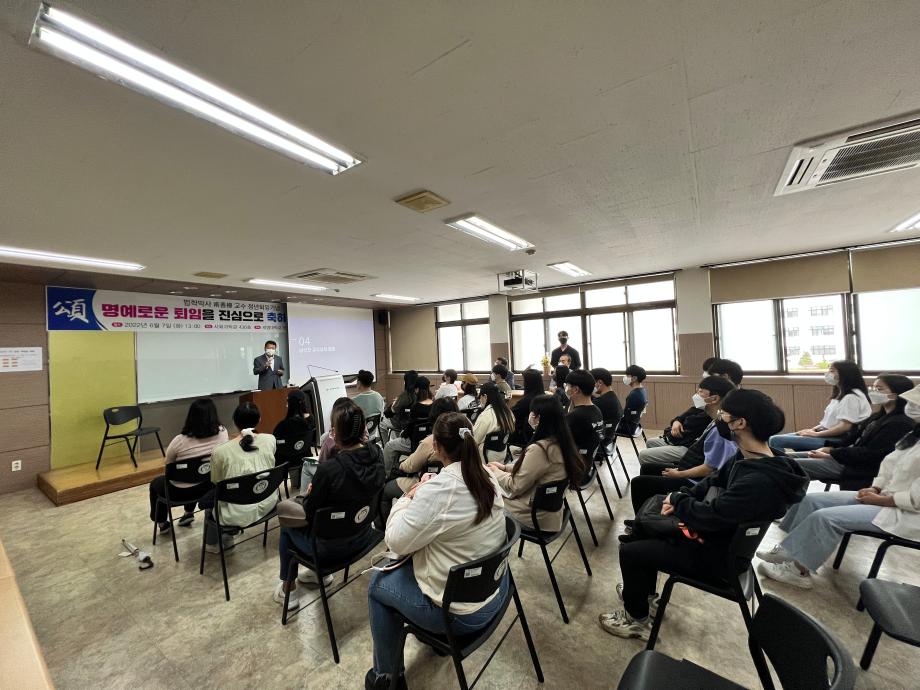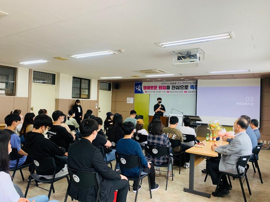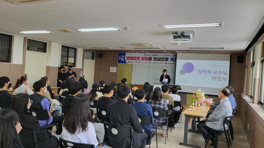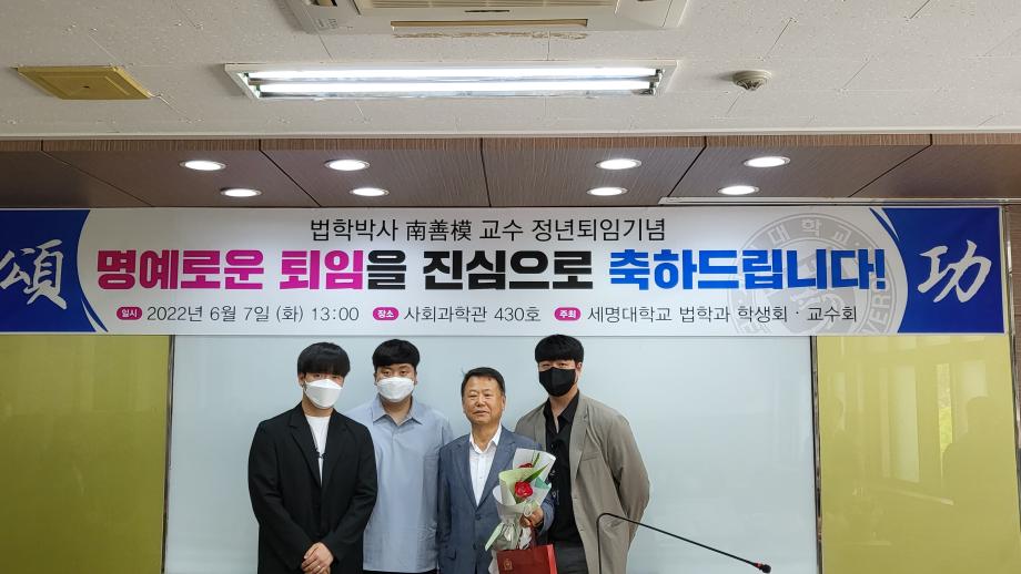 본문 시작 홈으로 커뮤니티 학과안내 교수소개 학과과정 커뮤니티 홈페이지가이드 학과사진첩 공지사항 취업정보 학과사진첩 학과행사 동아리 학생회 교우소식 학과사진첩 페이스북 트위터 프린트 2022-06-07, 남선모 교수님 퇴임식 법학과 4322 2022-06-07 2022-06-07, 남선모 교수님 퇴임식 목록 이전2022-06-03 환경의 날 기념, 솔밭공원 환경정화 봉사활동 다음 2022-06-24 충주 대원고등학교, 고교로 찾아가는 학과전공특강 프로그램 시행 담당부서 : 법학과 담당자 : - 연락처 : 043-649-1764 최종수정일 : 2024-10-26 만족도조사 만족도 조사 이 페이지에서 제공하는 정보에 대하여 만족하시나요? 매우만족 만족 보통 불만족 매우불만족