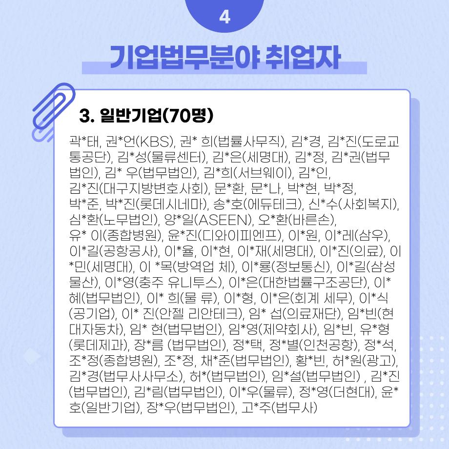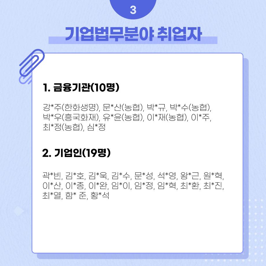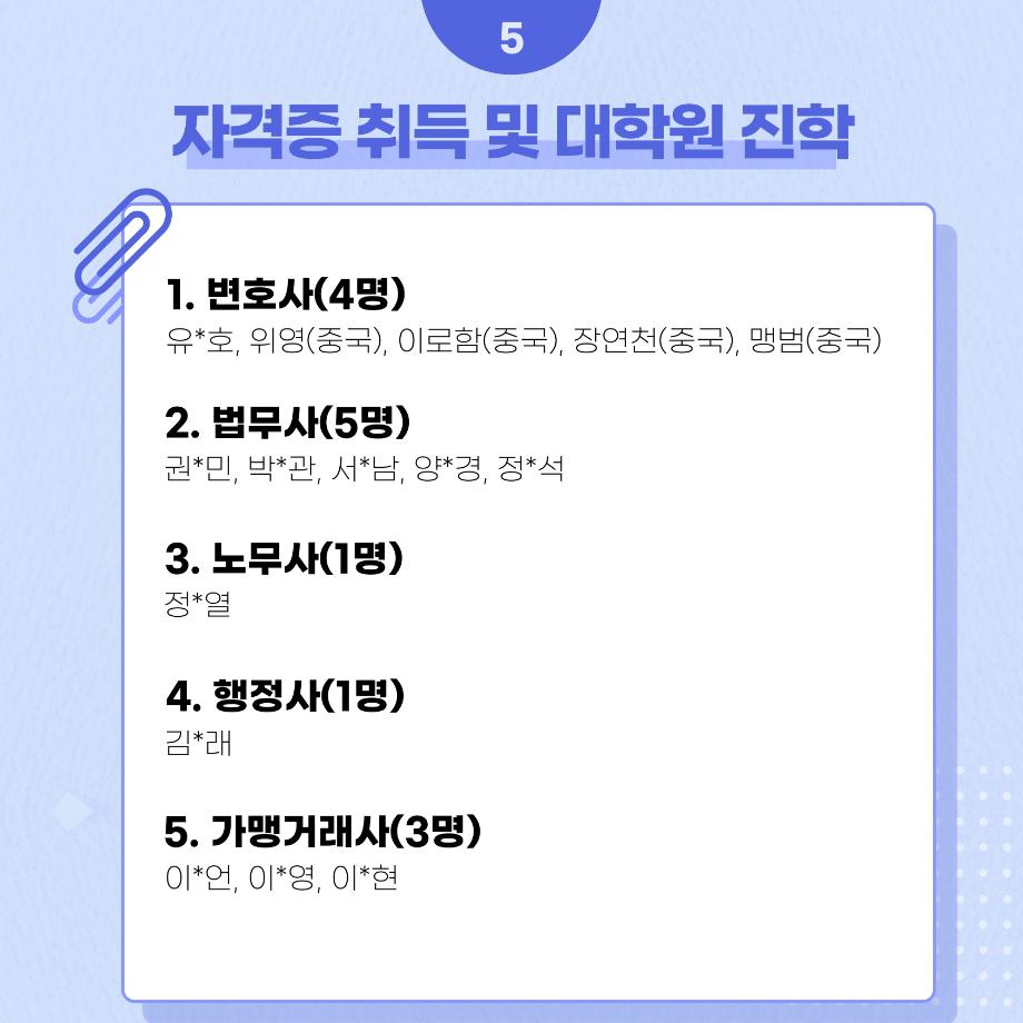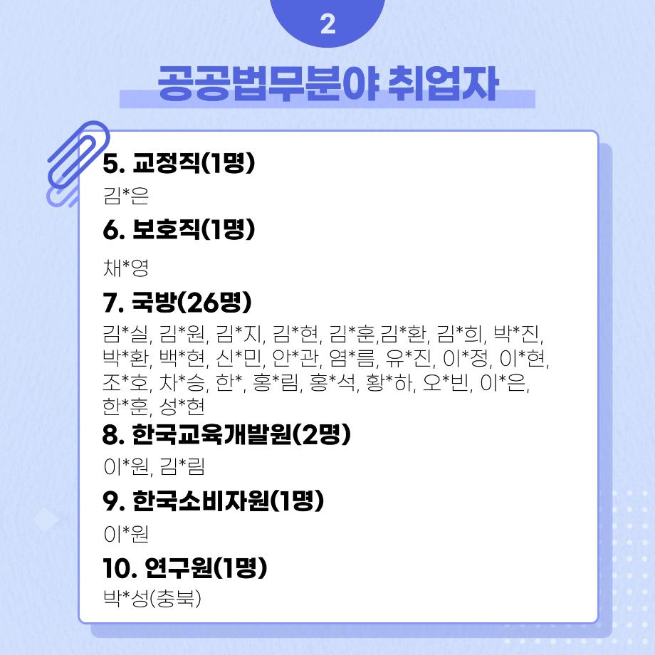 본문 시작 홈으로 커뮤니티 학과안내 교수소개 학과과정 커뮤니티 홈페이지가이드 학과사진첩 공지사항 취업정보 학과사진첩 학과행사 동아리 학생회 교우소식 학과사진첩 페이스북 트위터 프린트 법학과 선배들의 진로 현황 법학과 5483 2024-07-30 법학과 선배들의 진로 현황입니다. 목록 이전세명고등학교 입시홍보 방문 다음 세명진로 페스티벌 08.26 ~ 08.30 담당부서 : 법학과 담당자 : - 연락처 : 043-649-1764 최종수정일 : 2024-10-26 만족도조사 만족도 조사 이 페이지에서 제공하는 정보에 대하여 만족하시나요? 매우만족 만족 보통 불만족 매우불만족