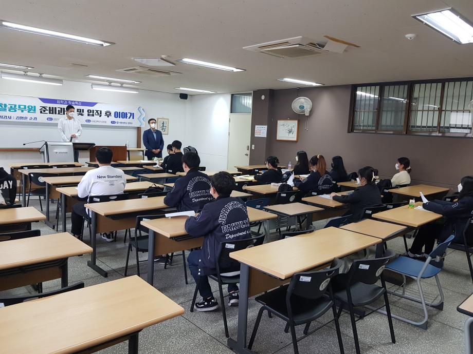 본문 시작 홈으로 커뮤니티 학과안내 교수소개 학과과정 커뮤니티 홈페이지가이드 학과사진첩 공지사항 취업정보 학과사진첩 학과행사 동아리 학생회 교우소식 학과사진첩 페이스북 트위터 프린트 2021.05.25 경찰 공무원 특강 법학과 5577 2021-06-04 2021년 5월 25일 김영훈 순경을 모시고 ' 경찰공무원 준비과정 및 입직 후 이야기' 라는 주제로 특강을 진행하였습니다. 목록 이전2021.04.27 학교 캠퍼스투어 및 간담회 다음 제천가정폭력상담소 교류협력 MOU 체결 담당부서 : 법학과 담당자 : - 연락처 : 043-649-1764 최종수정일 : 2024-10-26 만족도조사 만족도 조사 이 페이지에서 제공하는 정보에 대하여 만족하시나요? 매우만족 만족 보통 불만족 매우불만족