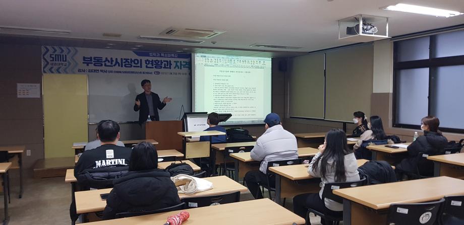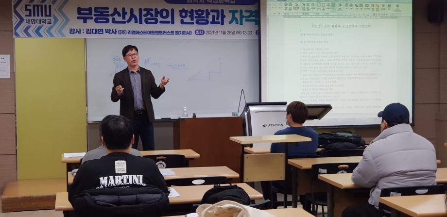 본문 시작 홈으로 커뮤니티 학과안내 교수소개 학과과정 커뮤니티 홈페이지가이드 학과사진첩 공지사항 취업정보 학과사진첩 학과행사 동아리 학생회 교우소식 학과사진첩 페이스북 트위터 프린트 2021. 11. 24 김대연 박사님 특강 법학과 2872 2021-11-25 2021년 11월 24일 (주)리얼이스테이트앤트러스트에서 등기이사을 맡고 계시는 김대연 박사님을 모시고 ' 부동산시장의 현황과 자격증 합격 전략' 이라는 주제로 특강을 진행하였습니다. ※본 특강은 코로나19 방역 수칙을 준수하여 진행하였습니다.※ 목록 이전2021. 11. 24 엄덕수 법무사님 특강 다음 2021 11. 25. 노철우 공인중개사님 특강 담당부서 : 법학과 담당자 : - 연락처 : 043-649-1764 최종수정일 : 2024-10-26 만족도조사 만족도 조사 이 페이지에서 제공하는 정보에 대하여 만족하시나요? 매우만족 만족 보통 불만족 매우불만족