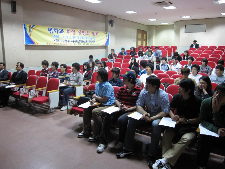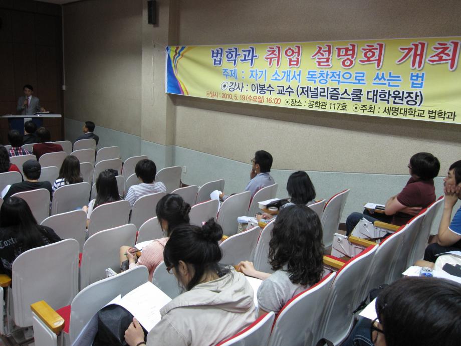본문 시작 홈으로 커뮤니티 학과안내 교수소개 학과과정 커뮤니티 홈페이지가이드 학과사진첩 공지사항 취업정보 학과사진첩 학과행사 동아리 학생회 교우소식 학과사진첩 페이스북 트위터 프린트 법학과 취업설명회 전체관리자 6641 2010-05-20 법학과 취업설명회가 성공적으로 끝났습니다. 강사 이봉수 교수님의 독창적인 자기소개서 쓰는 법을 듣고 나서 법학과 학생들은 자기소개서 쓰는 것에 대한 자신감을 가지게 되는 계기가 되었습니다. 목록 이전이근영 교수님 멘토링 단체 환경보호 활동 및 식사간담회 다음 장성원 교수님 멘토링 단체 환경보호 활동 및 야외활동 담당부서 : 법학과 담당자 : - 연락처 : 043-649-1764 최종수정일 : 2024-10-26 만족도조사 만족도 조사 이 페이지에서 제공하는 정보에 대하여 만족하시나요? 매우만족 만족 보통 불만족 매우불만족