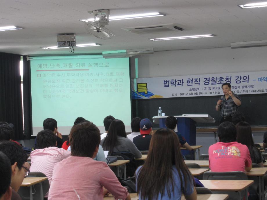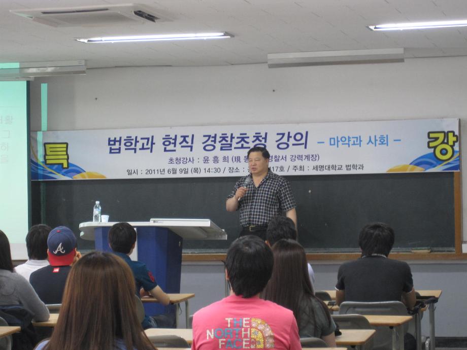 본문 시작 홈으로 커뮤니티 학과안내 교수소개 학과과정 커뮤니티 홈페이지가이드 학과사진첩 공지사항 취업정보 학과사진첩 학과행사 동아리 학생회 교우소식 학과사진첩 페이스북 트위터 프린트 경찰 초청 특강 - 마약과 사회 - 학과조교 5978 2011-07-13 6월 9일 동대문 경찰서 형사과 강력계의 윤흥희 계장님이 '마약과 사회' 라는 주제로 강의해주셨습니다^^ 목록 이전프랜차이즈 시장의 발달에 따른 현황 및 관련자격증의 전망[2] 다음 제17회 형사모의재판 사진1 담당부서 : 법학과 담당자 : - 연락처 : 043-649-1764 최종수정일 : 2024-10-26 만족도조사 만족도 조사 이 페이지에서 제공하는 정보에 대하여 만족하시나요? 매우만족 만족 보통 불만족 매우불만족