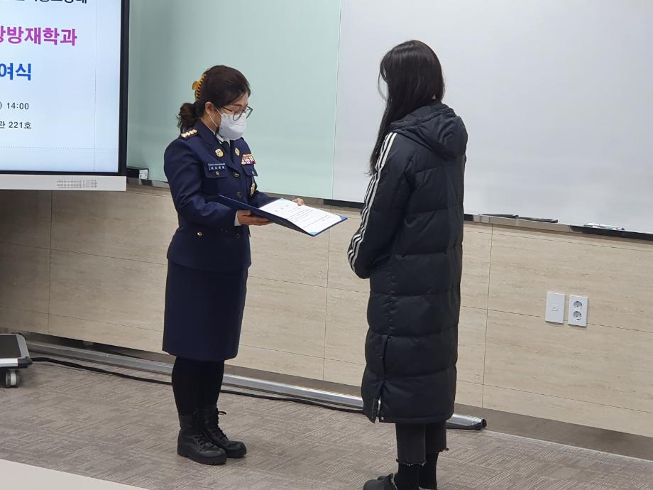 2022년 01월 25일 제천소방서 119 수호천사 전문의용소방대에서 세명대학교 소방방재학과 의용소방대원에 대한