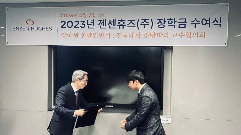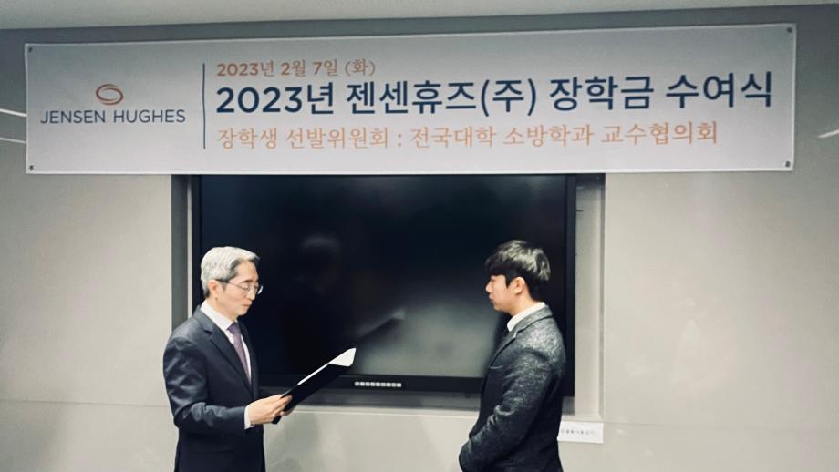 본문 시작 홈으로 커뮤니티 학과소개 교수소개 전공과정 커뮤니티 홈페이지가이드 학과행사 학과공지 채용정보 학사일정 학과행사 동아리 소방방재학과의 자랑 궁금합니다 수험생 Q&A 학과행사 페이스북 트위터 프린트 2023년 젠센휴즈(주) 장학금 수여식 소방방재학과 6205 2023-02-08 2023년 2월 7일 화요일 2023년 젠센휴즈(주) 장학금 수여식 장학금 선발위원회 : 전국대학 소방학과 교수협의회 세명대학교 소방방재학과에서는 권*준 학생이 장학금을 수여하였습니다. 목록 이전2022년 제22회 소방시설 관리사 합격 축하!! 다음 2022학년도 제29회 소방방재학과 학위수여식 담당부서 : 소방방재학과 담당자 : - 연락처 : 043-649-1787 최종수정일 : 2024-10-26 만족도조사 만족도 조사 이 페이지에서 제공하는 정보에 대하여 만족하시나요? 매우만족 만족 보통 불만족 매우불만족