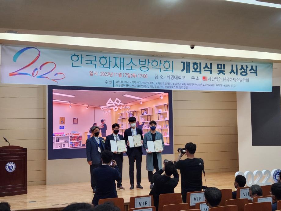 또한 세명대학교 소방방재학과 학과장 정해영 교수님께서 행정안전부 장관 표창을 수상하셨고, 소방방재공학과 소방 IT 융합 연구실 석사과정 최수기, 건설방재연구실 석사과정 김원창 연구원이 우수논문발표상을 수상하는 쾌거를 이뤘습니다.