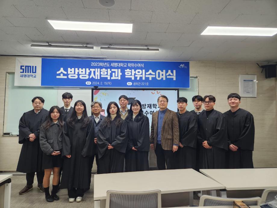 본문 시작 홈으로 커뮤니티 학과소개 교수소개 전공과정 커뮤니티 홈페이지가이드 학과행사 학과공지 채용정보 학사일정 학과행사 동아리 소방방재학과의 자랑 궁금합니다 수험생 Q&A 학과행사 페이스북 트위터 프린트 2023학년도 제30회 소방방재학과 학위수여식 소방방재학과 4141 2024-02-16 2023학년도 세명대학교 소방방재학과 학위수여식 2024년 2월 15일 수요일에 공학관 221호에서 진행되었습니다. 소방방재학과 교수님들과 졸업생, 학부모님들께서 참석하였습니다. 소방방재학과는 올해 32명의 학생들이 학사 학위를 취득하였습니 졸업을 진심으로 축하드리며 졸업생분들의 앞날을 응원합니다. 목록 이전제 7회 사회과학토론대회 장려상 수상 다음 2024학년도 스승의 날 행사 담당부서 : 소방방재학과 담당자 : - 연락처 : 043-649-1787 최종수정일 : 2024-10-26 만족도조사 만족도 조사 이 페이지에서 제공하는 정보에 대하여 만족하시나요? 매우만족 만족 보통 불만족 매우불만족