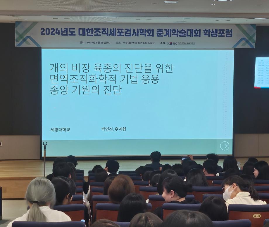 본문 시작 대한조직세포검사학회 임상병리학과 2298 2024-06-01 우계형, 우현준교수님과 히스토랩학생들이 지난 5월 25일 대한조직세포검사학회 춘계학술대회 학생포럼에 참가하였습니다. 발표준비에 매진한 연구원 학생들과 열심히 피드백을 해주신 교수님의 열정을 통해 두 팀 모두 우수상을 수상하였습니다. 수고하셨습니다. 좋은 결과 너무 축하드립니다. 목록 이전스승의 날 다음 S-Boot Camp 담당부서 : 임상병리학과 담당자 : - 연락처 : 043-649-1537 최종수정일 : 2024-10-26 만족도조사 만족도 조사 이 페이지에서 제공하는 정보에 대하여 만족하시나요? 매우만족 만족 보통 불만족 매우불만족