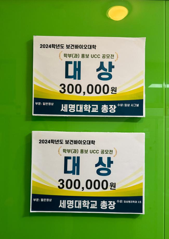 본문 시작 보건 바이오대학 UCC 공모전 대상 임상병리학과 1382 2024-06-12 안녕하세요 16기 학생회입니다☺️ 6.12일(수) 보건 바이오대학 UCC 공모전에서 16기 학생회가 짧은 영상, 일반 영상 부문에서 대상을 수상하게 되었습니다! 영상은 보건바이오 대학 유튜브 채널에 업로드될 예정이니 많은 관심 부탁드립니다:) 목록 이전시험기간 깜짝이벤트 다음 공동교육 담당부서 : 임상병리학과 담당자 : - 연락처 : 043-649-1537 최종수정일 : 2024-10-26 만족도조사 만족도 조사 이 페이지에서 제공하는 정보에 대하여 만족하시나요? 매우만족 만족 보통 불만족 매우불만족