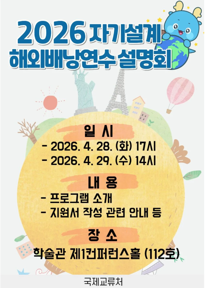 본문 시작 홈으로 학부자료실 학부소개 교육과정 학부공지게시판 학부자료실 홈페이지가이드 학부행사 및 사진게시판 학부행사 및 사진게시판 학생회 소개 학부행사 및 사진게시판 페이스북 트위터 프린트 2026 자기설계 해외배낭연수 설명회 시행 안내 바이오제약산업학부 9 2026-04-27 2026 자기설게 해외배낭연수와 관련하여 설명회를 진행하고자 하오니 재학생 여러분의 많은 관심과 참여를 부탁드립니다. 목록 이전축하합니다. 이*서 학생이 시마즈사이언티픽코리아에 취업하였습니다. 담당부서 : 바이오제약산업학부 담당자 : - 연락처 : 043-649-1729 최종수정일 : 2024-10-26 만족도조사 만족도 조사 이 페이지에서 제공하는 정보에 대하여 만족하시나요? 매우만족 만족 보통 불만족 매우불만족