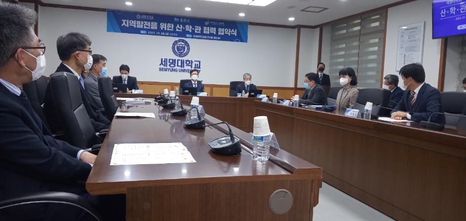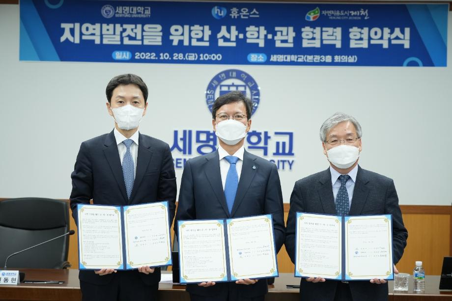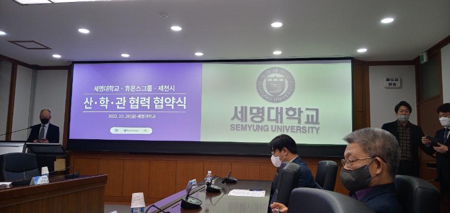 본문 시작 홈으로 학부자료실 학부소개 교육과정 학부공지게시판 학부자료실 홈페이지가이드 학부행사 및 사진게시판 학부행사 및 사진게시판 학생회 소개 학부행사 및 사진게시판 페이스북 트위터 프린트 세명대학교:휴온스 상생협력을 위한 산학관협약 체결 바이오제약산업학부 3507 2022-11-04 세명대학교(총장 권동현)와 휴온스그룹(회상 윤성태), 제천시는 28일 세명대학교 본관 대회의실에서 상생협력을 위한 산학관 협약을 체결했다. 이 자리에 직접 관련 전공인 바이오제약산업학부, 화장품뷰티학부 교수들도 함께하였다. 목록 이전한국식품영양과학회에서 포스터 발표 다음 오송첨단의료산업진흥재단 등 견학 담당부서 : 바이오제약산업학부 담당자 : - 연락처 : 043-649-1729 최종수정일 : 2024-10-26 만족도조사 만족도 조사 이 페이지에서 제공하는 정보에 대하여 만족하시나요? 매우만족 만족 보통 불만족 매우불만족