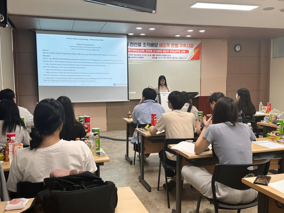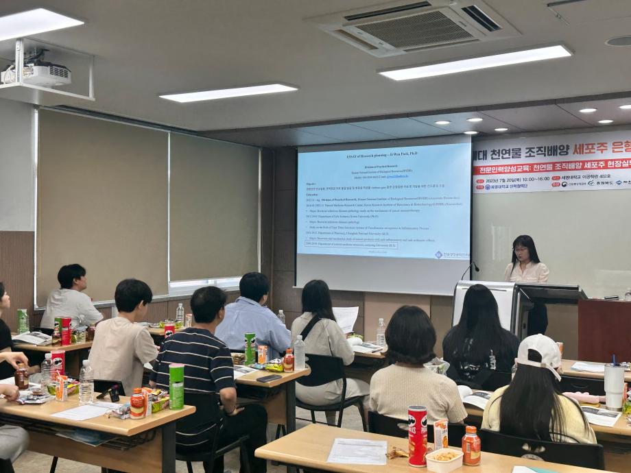 본문 시작 홈으로 학부자료실 학부소개 교육과정 학부공지게시판 학부자료실 홈페이지가이드 학부행사 및 사진게시판 학부행사 및 사진게시판 학생회 소개 학부행사 및 사진게시판 페이스북 트위터 프린트 국립호남권생물자원관 박지원 박사 ('06) 특강 바이오제약산업학부 3579 2023-07-21 우리학부 졸업생 박지원 박사('06)가 양병욱 교수가 수행하는 천연물 조직배양 세포주은행 구축을 위한 현장실무형 교육에서 특강을 하였다. 2023년 7월 20일 목요일 / 세명대학교 바이오제약산업학부 이공학관 404호 < 천연물 소재개발 및 효능분석 > - 미래자원의보고 - 식물자원소재 - 천연생물자원조사 및 확충 - 기초활성 및 효능분석 - 천연생물자원 효능분석사례 박지원 박사는 국립호남권생물자원관 실용화연구부에서 근무중이다. 목록 이전[엉뚱한 위원회] 방학중 활동 - '디카페인 커피에는 정말 카페인이 안 들어있을까? ' 다음 바이오제약산업학부 자기설계 해외 배낭연수 여행 결과 담당부서 : 바이오제약산업학부 담당자 : - 연락처 : 043-649-1729 최종수정일 : 2024-10-26 만족도조사 만족도 조사 이 페이지에서 제공하는 정보에 대하여 만족하시나요? 매우만족 만족 보통 불만족 매우불만족