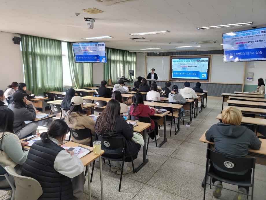 본문 시작 홈으로 학부자료실 학부소개 교육과정 학부공지게시판 학부자료실 홈페이지가이드 학부행사 및 사진게시판 학부행사 및 사진게시판 학생회 소개 학부행사 및 사진게시판 페이스북 트위터 프린트 제약바이오산업 현장실무 전문가 역량 강화 과정 생물의약품분야 교육 바이오제약산업학부 3482 2023-11-13 세명대학교 바이오제약산업학부에서는 제약바이오산업 현장실무 전문가 역량 강화 과정- 생물의약품분야 실무실습 교육특강 II 를 바이오제약 비교과 3차교육으로 실시하였다. 교육은 2023년 11월 10일 (금) 14:00-17:00 이공학관 406호 및 407호에서 실시 되었으며, ELISA 원리 이론 교육, 보톨이눔 독소의 산업적 중요성 및 품질관리 개념의 이해의 내용으로 진행되었다. 목록 이전바이오제약산업학부 CHARM 경험 발표회 다음 IC-PBL orientation 개최 담당부서 : 바이오제약산업학부 담당자 : - 연락처 : 043-649-1729 최종수정일 : 2024-10-26 만족도조사 만족도 조사 이 페이지에서 제공하는 정보에 대하여 만족하시나요? 매우만족 만족 보통 불만족 매우불만족