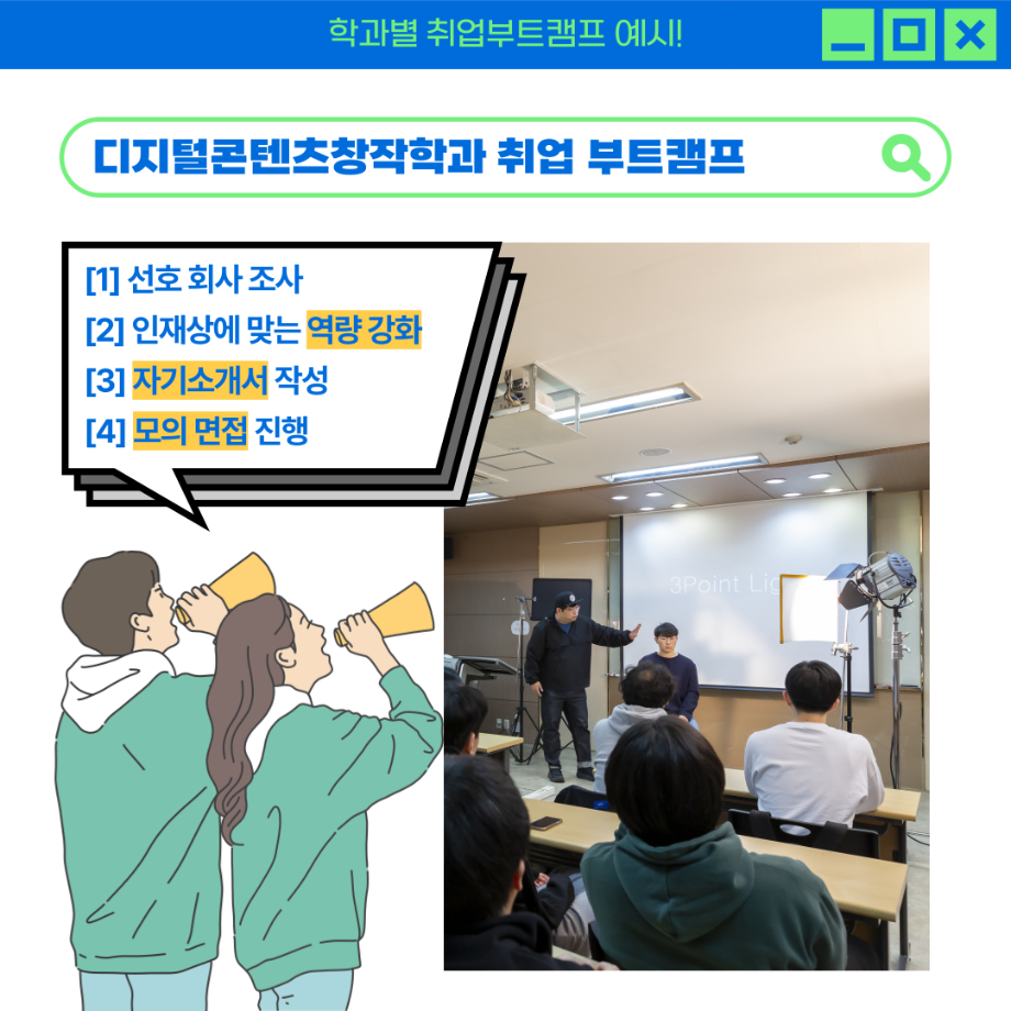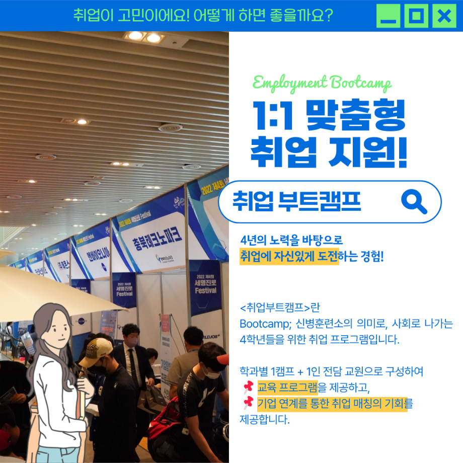 본문 시작 홈으로 학부자료실 학부소개 교육과정 학부공지게시판 학부자료실 홈페이지가이드 학부행사 및 사진게시판 학부행사 및 사진게시판 학생회 소개 학부행사 및 사진게시판 페이스북 트위터 프린트 취업부트캠프 & 창의적 활동공간 (입학관리본부) 바이오제약산업학부 3279 2023-11-17 취업부트캠프 & 창의적 활동공간 목록 이전글로벌 경험을 위한 프로그램 다음 책임지도교수제 & 빨간펜 (입학관리본부) 담당부서 : 바이오제약산업학부 담당자 : - 연락처 : 043-649-1729 최종수정일 : 2024-10-26 만족도조사 만족도 조사 이 페이지에서 제공하는 정보에 대하여 만족하시나요? 매우만족 만족 보통 불만족 매우불만족