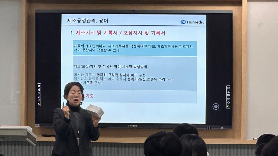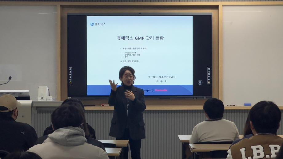 본문 시작 홈으로 학부자료실 학부소개 교육과정 학부공지게시판 학부자료실 홈페이지가이드 학부행사 및 사진게시판 학부행사 및 사진게시판 학생회 소개 학부행사 및 사진게시판 페이스북 트위터 프린트 휴메딕스 이은숙 이사 특강_현직자가 알려주는 GMP&Validation 바이오제약산업학부 3343 2023-12-08 바이오제약산업학부에서는 휴메딕스 생산실장, 제조부서책임자 이은숙 이사님을 모시고 휴메딕스 GMP 관리 현황에 대한 특강을 진행하였다. GMP가 엄격히 관리되고 있는 기업의 현황을 사례로 제약산업에서 필수적인 GMP에 대한 의미있는 교육이 진행되었다. 목록 이전휴메딕스 원상호 부장 특강_현직자가 알려주는 제약품질 관리 다음 2023학년도 전기 학위 수여식 안내 담당부서 : 바이오제약산업학부 담당자 : - 연락처 : 043-649-1729 최종수정일 : 2024-10-26 만족도조사 만족도 조사 이 페이지에서 제공하는 정보에 대하여 만족하시나요? 매우만족 만족 보통 불만족 매우불만족