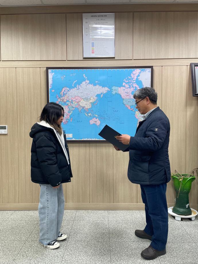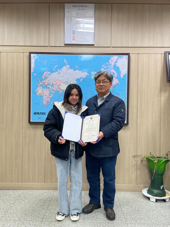 본문 시작 홈으로 학부자료실 학부소개 교육과정 학부공지게시판 학부자료실 홈페이지가이드 학부행사 및 사진게시판 학부행사 및 사진게시판 학생회 소개 학부행사 및 사진게시판 페이스북 트위터 프린트 우리학부 생 시티카(캄보디아) 국립국제교육원 원장상 수상 바이오제약산업학부 3118 2024-02-01 바이오제약산업학부 학부과정에 재학 중인 생 시티카(캄보디아)는 우수한 학업 성과를 인정받아 교육부 산하 국립국제교육원으로부터 원장상을 수상했다. 생시티카 학생은 정부초청장학생으로 2022년 세명대학교 바이오제약산업학부 입학 후 한국어능력시험(TOPIK) 6급 취득 및 우수한 학업 성적을 유지하고 있다. 국립국제교육원에서는 정부초청외국인장학사업(GKS)을 통해 초청한 외국인 장학생 중 유학 생활 성과가 우수한 학생을 매년 선정해 시상하고 있다. 목록 이전축하합니다. 권*현, 박*호 학생이 휴온스에 취업하였습니다. 다음 2024학년도 404호 강의실 리모델링 담당부서 : 바이오제약산업학부 담당자 : - 연락처 : 043-649-1729 최종수정일 : 2024-10-26 만족도조사 만족도 조사 이 페이지에서 제공하는 정보에 대하여 만족하시나요? 매우만족 만족 보통 불만족 매우불만족