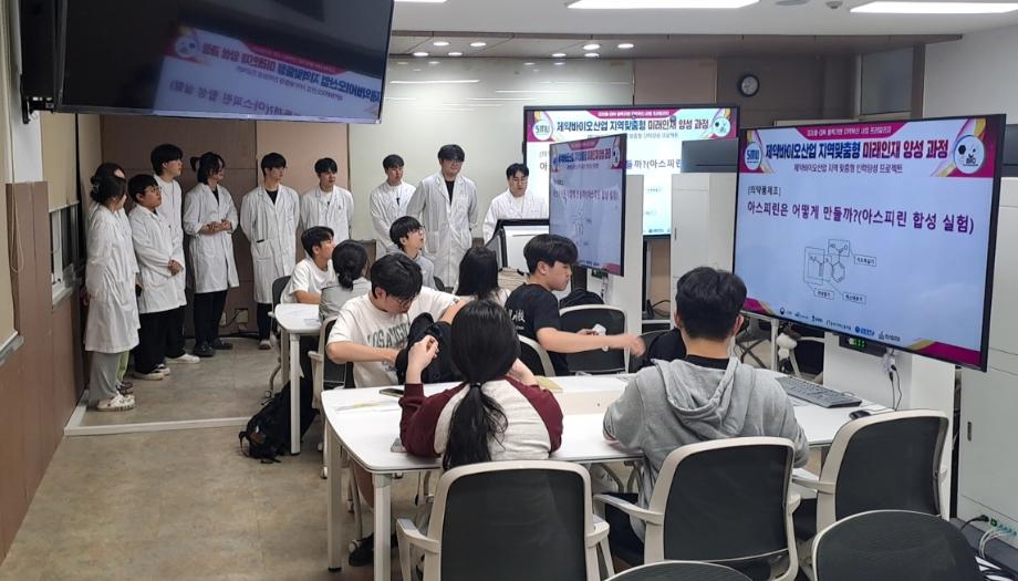 본문 시작 홈으로 학부자료실 학부소개 교육과정 학부공지게시판 학부자료실 홈페이지가이드 학부행사 및 사진게시판 학부행사 및 사진게시판 학생회 소개 학부행사 및 사진게시판 페이스북 트위터 프린트 제천고교, 제천여고, 제천제일고 프리칼리지 바이오제약산업학부 2224 2024-05-16 세명대학교 바이오제약산업학부에서는 제천시내 고등학생들에게 전공체험, 진로지도 프로그램인 프리칼리지를 2024년 5월 14일 진행하였다. 양병욱 교수가 진행한 본 프로그램에는 제천고, 제천제일고, 제천여고 2학년 학생 16명이 참여 하였다. 목록 이전코스맥스파마 차배천 본부장님 특강 다음 백광열 학생이 코스맥스파마에 취업하였습니다. 담당부서 : 바이오제약산업학부 담당자 : - 연락처 : 043-649-1729 최종수정일 : 2024-10-26 만족도조사 만족도 조사 이 페이지에서 제공하는 정보에 대하여 만족하시나요? 매우만족 만족 보통 불만족 매우불만족