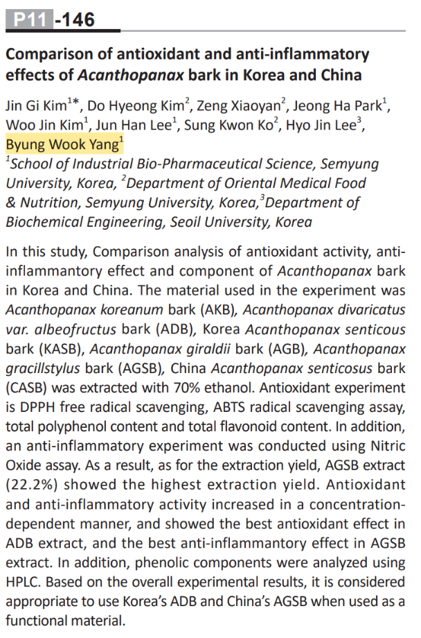 effects of Acanthopanax bark in Korea and China이다.