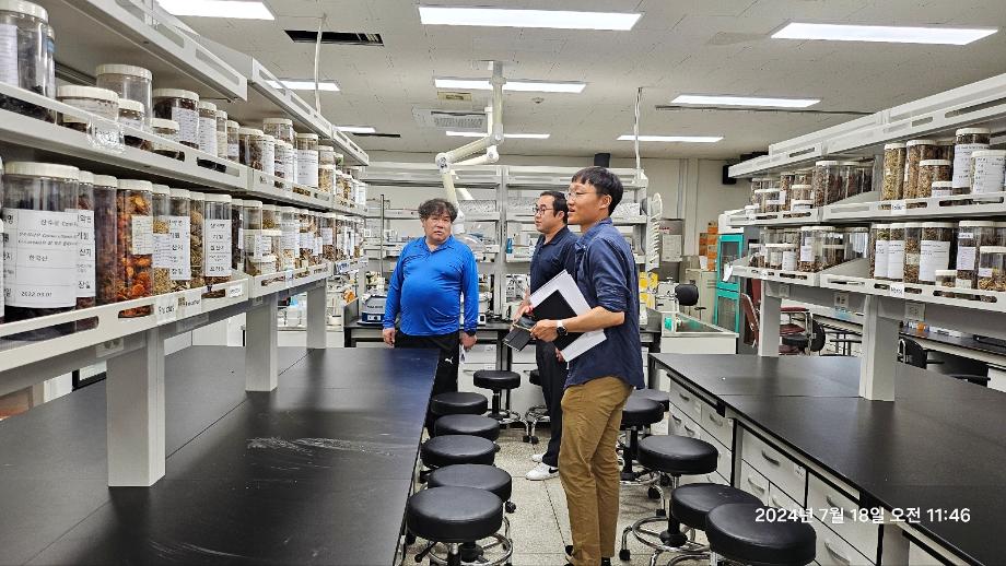 본문 시작 홈으로 학부자료실 학부소개 교육과정 학부공지게시판 학부자료실 홈페이지가이드 학부행사 및 사진게시판 학부행사 및 사진게시판 학생회 소개 학부행사 및 사진게시판 페이스북 트위터 프린트 산림청 국립산림과학원 산림약용자원연구소 연구개발 협의 바이오제약산업학부 2635 2024-07-21 2024년 7월 18일 산림청 국립산림과학원 산림약용자원연구소 김현준 연구사와 손용환박사가 바이오제약산업학부를 방문하여 진행되고 있는 과제의 점검과 향후 과제에 대한 논의를 하였다. 김현준 박사는 세명대학교 전체수석으로 졸업한 바이오제약산업학부 1회 동문으로 현재는 산림청 국립산림과학원 산림약용자원연구소에서 연구사로 근무 중이다. 목록 이전유유제약 표준현장실습 박*은 면담 다음 우리학부 동문 박지원 박사 2년 연속 한국미생물 · 생명공학회 우수 포스터발표상 수상 담당부서 : 바이오제약산업학부 담당자 : - 연락처 : 043-649-1729 최종수정일 : 2024-10-26 만족도조사 만족도 조사 이 페이지에서 제공하는 정보에 대하여 만족하시나요? 매우만족 만족 보통 불만족 매우불만족