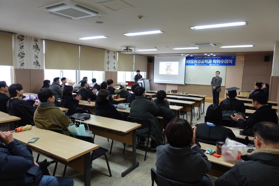 본문 시작 홈으로 커뮤니티 학과소개 교수소개 학과과정 커뮤니티 홈페이지가이드 학과활동 및 행사 학과공지 채용정보 학과활동 및 행사 전공자료실 동아리 학과활동 및 행사 페이스북 트위터 프린트 2024학년도 바이오환경공학과 27회 졸업식 거행 환경에너지학과 2007 2025-02-12 세명대학교 바이오환경공학과는 2월 12일 오전 11시에 이공학관 504호실에서 2024학년도 졸업식을 거행하였습니다(27회) 이번에 30명의 졸업생이 배출되어 누적 819명의 졸업생이 배출되었습니다. 졸업생 모두 앞날에 행운과 발전이 가득하기 바랍니다. 목록 이전세명대학교 2025학년도 정시모집[나군/다군] 주요사항 안내 다음 2025-1학기 학과 개강 총회 진행 담당부서 : 환경에너지학과 담당자 : - 연락처 : 043-649-1337 최종수정일 : 2024-10-26 만족도조사 만족도 조사 이 페이지에서 제공하는 정보에 대하여 만족하시나요? 매우만족 만족 보통 불만족 매우불만족
