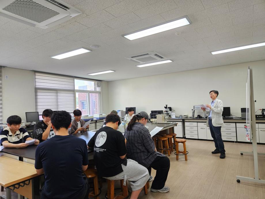 본문 시작 홈으로 커뮤니티 학과소개 교수소개 학과과정 커뮤니티 홈페이지가이드 학과활동 및 행사 학과공지 채용정보 학과활동 및 행사 전공자료실 동아리 학과활동 및 행사 페이스북 트위터 프린트 생물반응공학및실습과목 실습 수업 진행 환경에너지학과 1073 2025-09-10 환경에너지학과 3학년 생물반응공학및실습과목 수업이 진행되었습니다. 실험실에서 집중하고 있는 학생들의 수업입니다. 목록 이전바이오환경실무체험 학술특강 1차 실시 다음 바이오환경실무체험 학술특강 2차 실시 담당부서 : 환경에너지학과 담당자 : - 연락처 : 043-649-1337 최종수정일 : 2024-10-26 만족도조사 만족도 조사 이 페이지에서 제공하는 정보에 대하여 만족하시나요? 매우만족 만족 보통 불만족 매우불만족