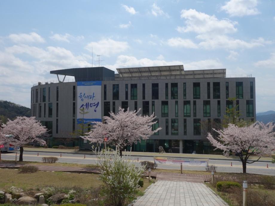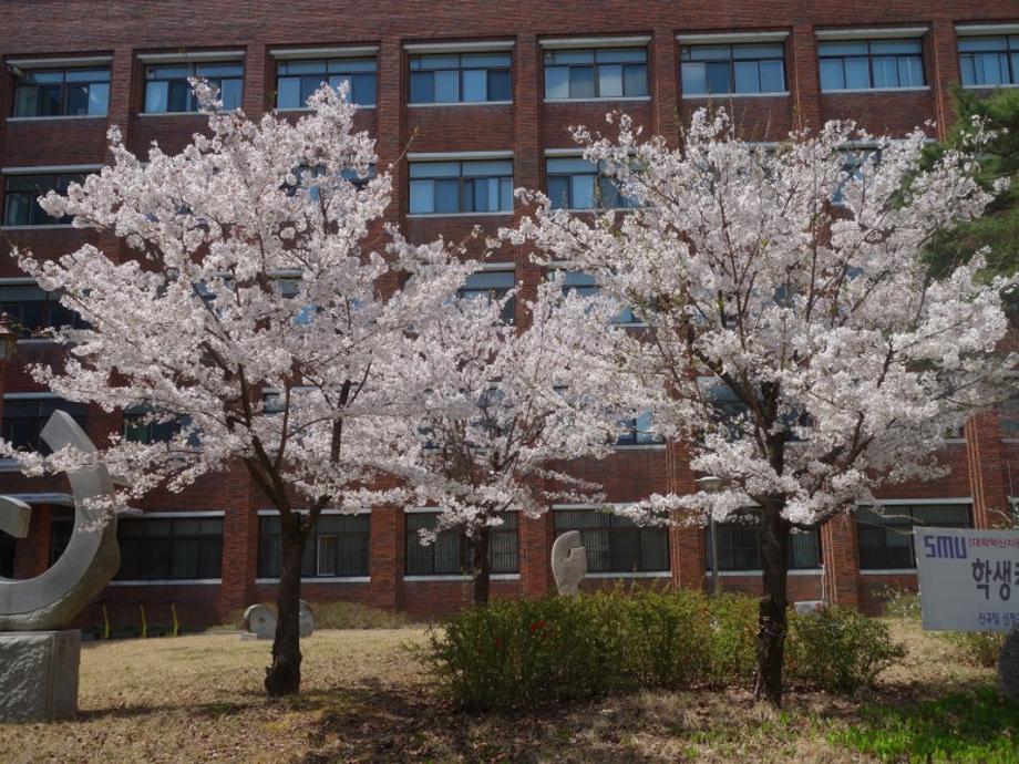 지금 학교에는 이공학관을 비롯하여 민송기념관, 설립자 권영우 박사님의 동상 등 벚꽃으로 꾸며진 세명대학교를 확인할 수 있습니다.