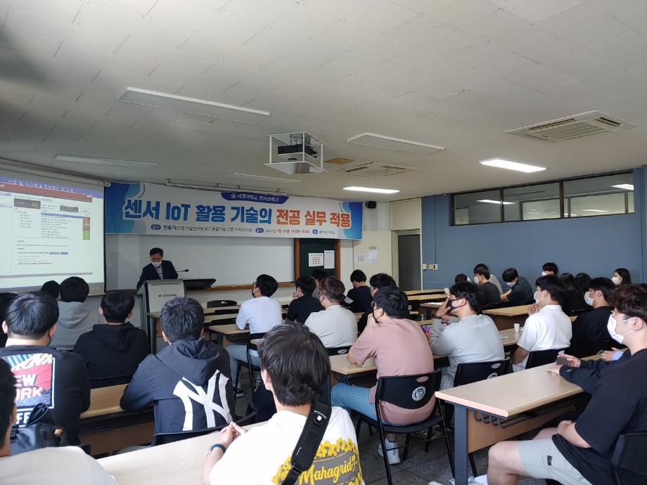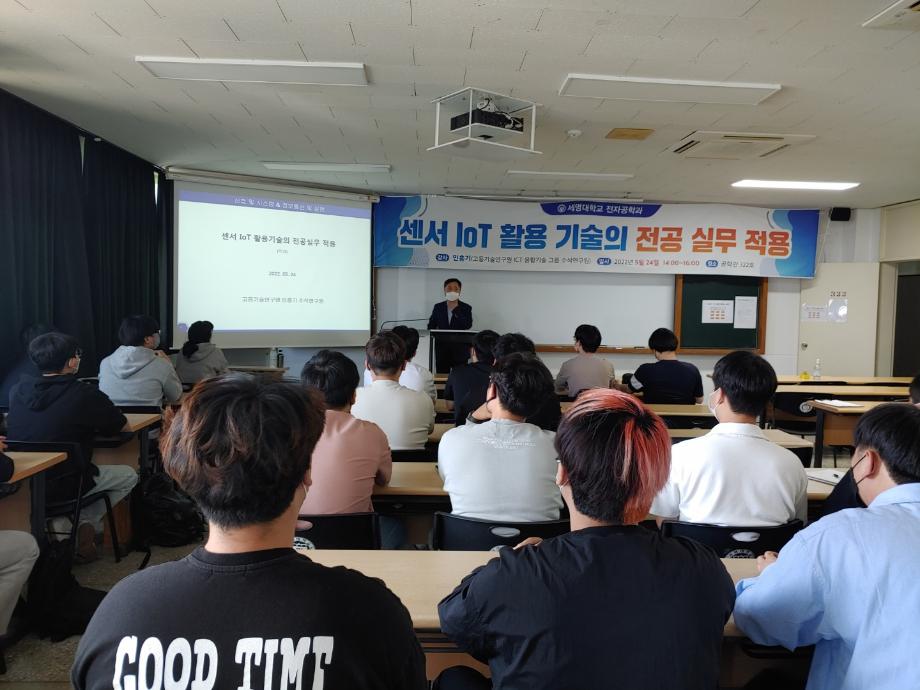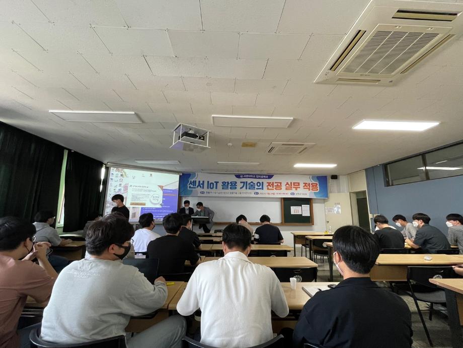 본문 시작 홈으로 커뮤니티 학과소개 교육과정 학과활동 커뮤니티 진로취업 입학상담 홈페이지가이드 포토갤러리 학과공지 포토갤러리 자유게시판 동영상 게시판 포토갤러리 페이스북 트위터 프린트 '센서 IoT를 활용 기술의 전공 실무 적용' 특강 전자공학과 2694 2022-05-24 전자공학과에서 '센서 IoT 활용 기술의 전공 실무 적용'에 대해서 특강을 진행하였습니다. 민흥기 강사님께서 직접 오셔서 여러가지 센서를 활용한 작품 관련 자료를 강의하였습니다. 특강을 통해 여러 작품의 자료를 배우면서 전자공학을 졸업 한 후 실무 활동 및 전공에 대한 이해도를 더욱 깊이 배울 수 있는시간이 되었습니다. 목록 이전M.X동아리 세미나 다음 고등학생 특강을 위한 멘토 준비 담당부서 : 전자공학과 담당자 : - 연락처 : 043-649-1683 최종수정일 : 2024-10-26 만족도조사 만족도 조사 이 페이지에서 제공하는 정보에 대하여 만족하시나요? 매우만족 만족 보통 불만족 매우불만족