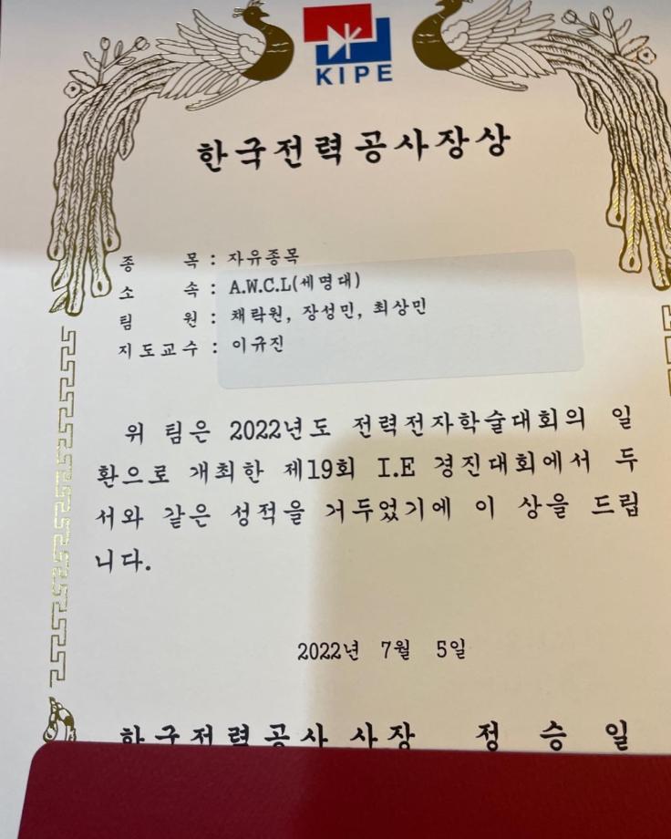 본문 시작 홈으로 커뮤니티 학과소개 교육과정 학과활동 커뮤니티 진로취업 입학상담 홈페이지가이드 포토갤러리 학과공지 포토갤러리 자유게시판 동영상 게시판 포토갤러리 페이스북 트위터 프린트 2022년 제19회 I.E(Intelligent Electronics)경진대회 수상 전자공학과 2700 2022-07-09 전자공학과 차세대무선통신동아리는 7/5일 경주에서 열린 전력전자학술대회에 참가하였습니다. 지정작품으로 ‘태양열과 열전소자를 이용한 에너지순환 스마트팜’과 자유작품으로 ‘가시광 통신을 이용한 실내 휠체어’ 주제로 참가하였습니다. 수상으로는 한국전력공사장상을 했습니다. 이 대회 참가로 전자공학에 대한 보는 눈이 더 넓어졌고 세명대학교의 이름을 알릴 수 있는 귀중한 시간이였습니다. 목록 이전ORCAD 특강 마무리 다음 제천제일고등학교 특강 1일차 (나의 앱 만들기 아두이노 앱) 담당부서 : 전자공학과 담당자 : - 연락처 : 043-649-1683 최종수정일 : 2024-10-26 만족도조사 만족도 조사 이 페이지에서 제공하는 정보에 대하여 만족하시나요? 매우만족 만족 보통 불만족 매우불만족