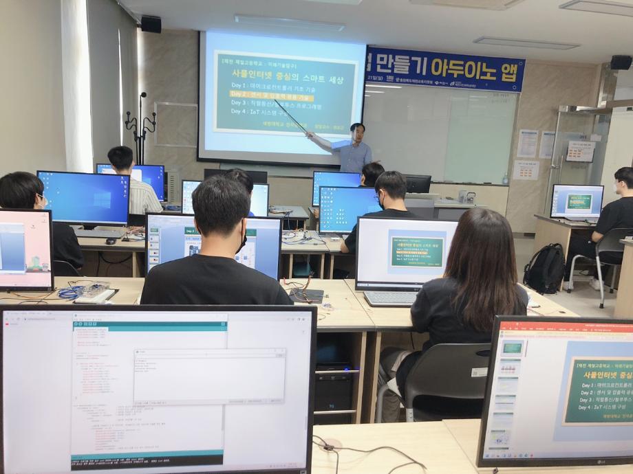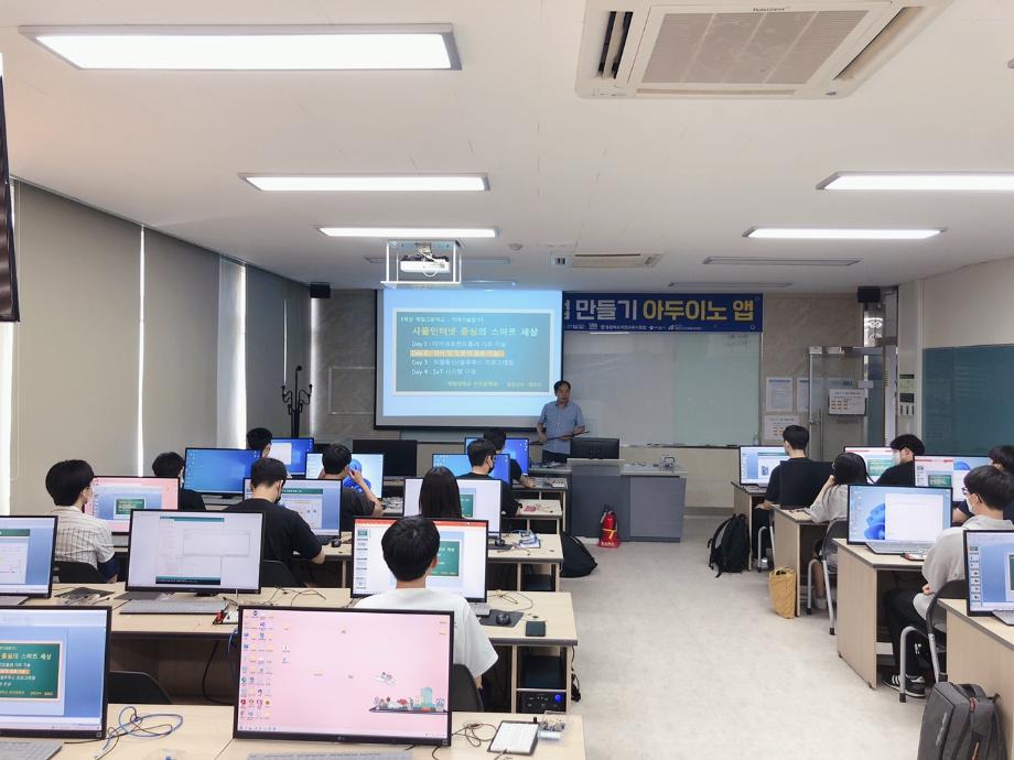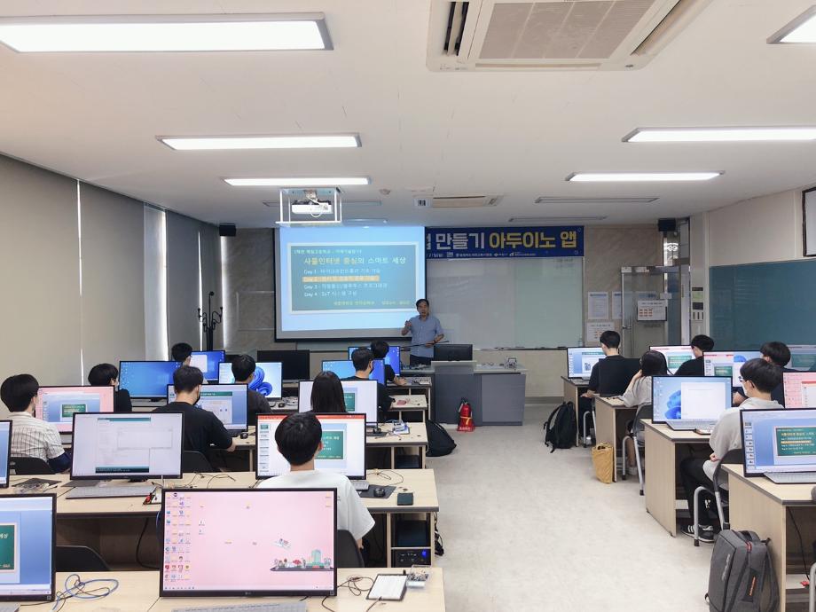 본문 시작 홈으로 커뮤니티 학과소개 교육과정 학과활동 커뮤니티 진로취업 입학상담 홈페이지가이드 포토갤러리 학과공지 포토갤러리 자유게시판 동영상 게시판 포토갤러리 페이스북 트위터 프린트 제천제일고등학교 특강 2일차 (나의 앱 만들기 아두이노 앱) 전자공학과 2880 2022-07-12 7/8일 제일고등학교 학생을 대상으로 ‘나의 앱 만들기 아두이노 앱’ 특강 2일차를 진행했습니다. 학생들은 2일차 특강에서 적외선 센서, 모터, 스피커 사용을 하여 시리얼 통신을 통해 제어하는 것을 배웠습니다. 목록 이전제천제일고등학교 특강 1일차 (나의 앱 만들기 아두이노 앱) 다음 제천제일고등학교 특강 3일차 (나의 앱 만들기 아두이노 앱) 담당부서 : 전자공학과 담당자 : - 연락처 : 043-649-1683 최종수정일 : 2024-10-26 만족도조사 만족도 조사 이 페이지에서 제공하는 정보에 대하여 만족하시나요? 매우만족 만족 보통 불만족 매우불만족