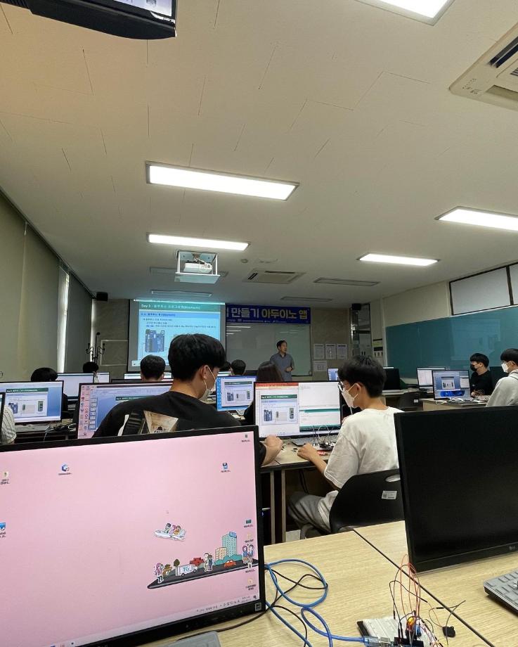 본문 시작 홈으로 커뮤니티 학과소개 교육과정 학과활동 커뮤니티 진로취업 입학상담 홈페이지가이드 포토갤러리 학과공지 포토갤러리 자유게시판 동영상 게시판 포토갤러리 페이스북 트위터 프린트 제천제일고등학교 특강 3일차 (나의 앱 만들기 아두이노 앱) 전자공학과 2922 2022-07-12 7/11일 제일고등학교 학생들을 대상으로 ‘나의 앱 만들기 아누이노 앱’ 특강 3일차를 진행했습니다. 3일차에는 각 센서를 어플을 이용하여 제어하였습니다. 각자 태블릿을 지급하여 직접 어플을 만드는 시간이였습니다. 목록 이전제천제일고등학교 특강 2일차 (나의 앱 만들기 아두이노 앱) 다음 제천제일고등학교 특강 4일차 (나의 앱 만들기 아두이노 앱) 담당부서 : 전자공학과 담당자 : - 연락처 : 043-649-1683 최종수정일 : 2024-10-26 만족도조사 만족도 조사 이 페이지에서 제공하는 정보에 대하여 만족하시나요? 매우만족 만족 보통 불만족 매우불만족