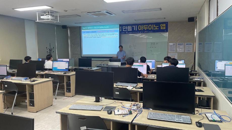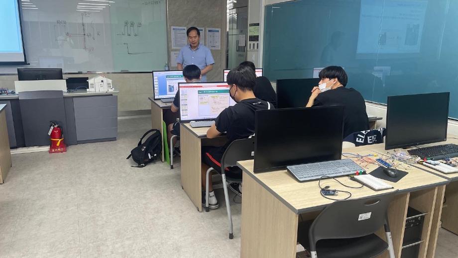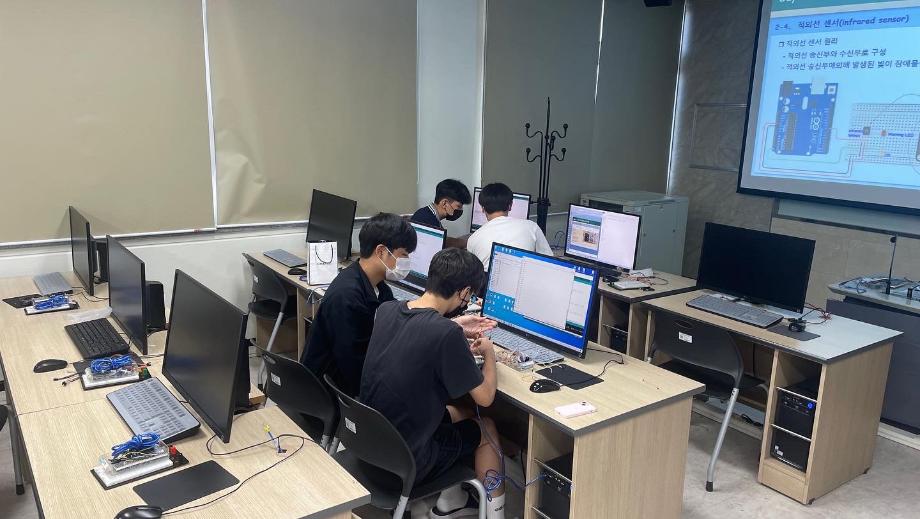 본문 시작 홈으로 커뮤니티 학과소개 교육과정 학과활동 커뮤니티 진로취업 입학상담 홈페이지가이드 포토갤러리 학과공지 포토갤러리 자유게시판 동영상 게시판 포토갤러리 페이스북 트위터 프린트 제천 세명고등학교 특강 2일차(나의 앱 만들기 아두이노 앱) 전자공학과 3233 2022-07-15 7/14일 세명고등학교 학생을 상대로 ‘나의 앱 만들기 아두이노 앱’ 특강을 진행하였습니다. 비교적 짧은 시간이였지만 학생들은 IoT에 필요한 여러 센서들을 제어하며 블루투스와 어플을 이용하여 간단한 IoT 실습을 하였습니다. 학생들이 전자공학에 관심을 가지고 흥미를 가질 수 있는 시간이였습니다. 목록 이전제천 세명고등학교 특강 1일차(나의 앱 만들기 아두이노 앱) 다음 2022년도 전자공학과 전공체험 프로그램 담당부서 : 전자공학과 담당자 : - 연락처 : 043-649-1683 최종수정일 : 2024-10-26 만족도조사 만족도 조사 이 페이지에서 제공하는 정보에 대하여 만족하시나요? 매우만족 만족 보통 불만족 매우불만족