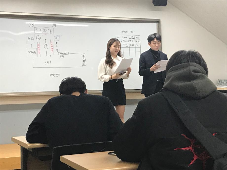 본문 시작 홈으로 커뮤니티 학과소개 교수소개 학과과정 커뮤니티 작품DB 서울대학로 민송아트홀 홈페이지가이드 사진자료실 학과공지 전공자료실 사진자료실 사진자료실 페이스북 트위터 프린트 [공연영상학과] 진행요원 1차 교육 공연영상학과 6057 2019-05-10 2019년 5월 25일 "외부 관객들에게 진행요원은 공연영상학과의 대표 얼굴입니다" 학생회에서 새롭게 개설된 '진행부'에서는 공연관람의 원활한 진행을 위해, 진행요원 메뉴얼을 만들었습니다. 메뉴얼을 토대로 학기 프로젝트 연출 및 조연출 또는 진행요원을 희망하는 학생들을대상으로 1차 교육을 실시했습니다 ! 목록 이전[공연영상학과] 2019년 동계프로젝트 "ㅇㅎㅎ" 다음 [공연영상학과] 2019-1학기 청룡체전 담당부서 : 공연영상학과 담당자 : - 연락처 : 043-649-1429 최종수정일 : 2024-10-26 만족도조사 만족도 조사 이 페이지에서 제공하는 정보에 대하여 만족하시나요? 매우만족 만족 보통 불만족 매우불만족