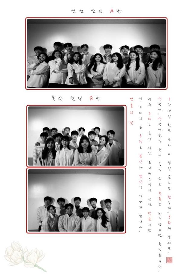 본문 시작 홈으로 커뮤니티 학과소개 교수소개 학과과정 커뮤니티 작품DB 서울대학로 민송아트홀 홈페이지가이드 사진자료실 학과공지 전공자료실 사진자료실 사진자료실 페이스북 트위터 프린트 [공연영상학과] 2019학년도 기초연기 워크샵 "연변엄마 - 목란언니" 공연영상학과 7621 2019-12-14 연출 : 이여빈 , 김민규 , 이재우 , 김재준 배우 : 강채승 , 국효림 , 김민석 , 김영서 , 김주영 , 김지훈 , 김진영 김혜미 , 김영민 , 나보광 , 박건민 , 박성민 , 박솔빈 박주빈 , 방승아 , 서동민 , 심명균 , 안종현 , 양한나 원성준 , 유수진 , 이경용 , 이승욱 , 이승윤 , 이윤규 이종화 , 장현서 , 정지원 , 조문형 , 최동현 , 한가희 한민경 , 황규빈 , 황치웅 도움 : 양승진, 채희수 지도교수 : 최용진 목록 다음 [공연영상학과] 2019-2학기 영상제 다음 [공연영상학과] 2019-2학기 종강총회 담당부서 : 공연영상학과 담당자 : - 연락처 : 043-649-1429 최종수정일 : 2024-10-26 만족도조사 만족도 조사 이 페이지에서 제공하는 정보에 대하여 만족하시나요? 매우만족 만족 보통 불만족 매우불만족