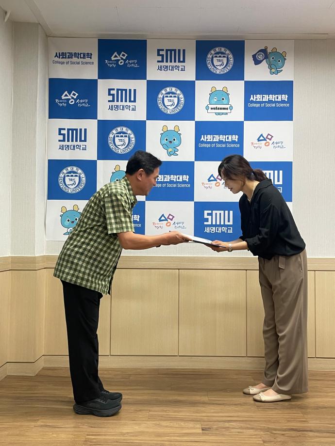 본문 시작 홈으로 커뮤니티 대학소개 학과소개 입학안내 커뮤니티 홈페이지가이드 포토갤러리 대학소식 자료실 포토갤러리 포토갤러리 페이스북 트위터 프린트 2025학년도 1학기 수업평가 우수강사 상장 수여식 사회과학대학 972 2025-09-02 법학과 이율경 강사님 목록 이전사회과학대학 2024학년도 후기 학위수여식 다음 2025 제2회 사회과학대학 발전포럼 성료 (1/2) 담당부서 : 사회과학대학 담당자 : - 연락처 : 043-649-7412 최종수정일 : 2024-10-26 만족도조사 만족도 조사 이 페이지에서 제공하는 정보에 대하여 만족하시나요? 매우만족 만족 보통 불만족 매우불만족