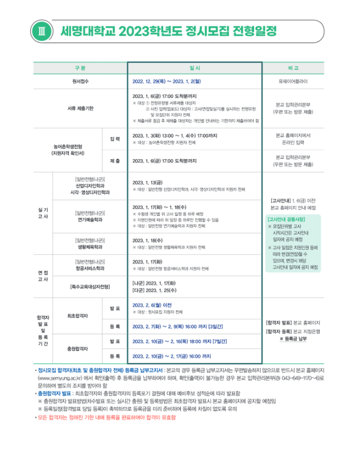 2023년도 신입생 정시모집 안내
