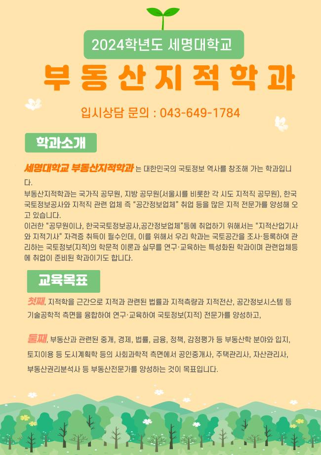 안녕하세요. 세명대학교 부동산지적학과입니다.