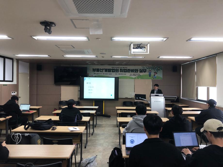 내용 : HDC 아이콘앤스 황종인 강사님은 부동산자산관리실무체험 에 특강을 해주셨습니다. 학교에서 배우기 어려운 부동산개발과 취업준비특강을 구체적으로 설명을 해주셨습니다. 학생들은 부동산분야의 진로에 깊이 고민하고 답을 얻는 시간이였다고 생각합니다.