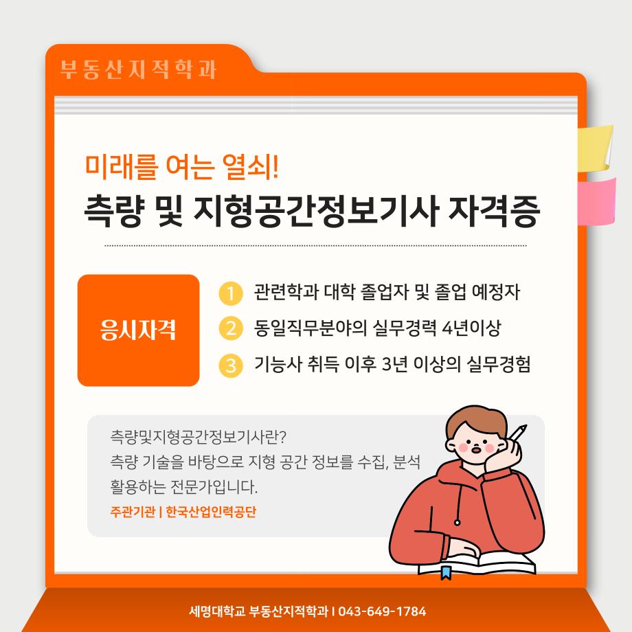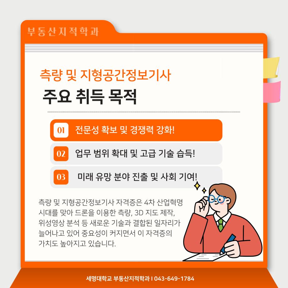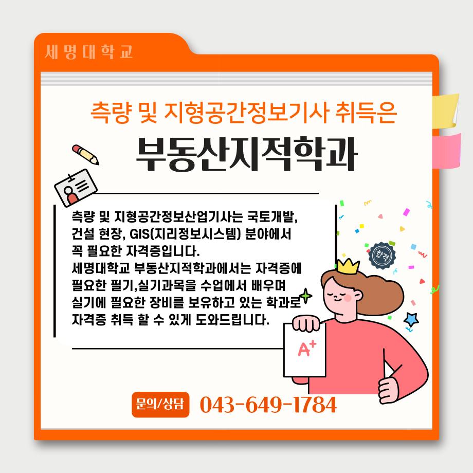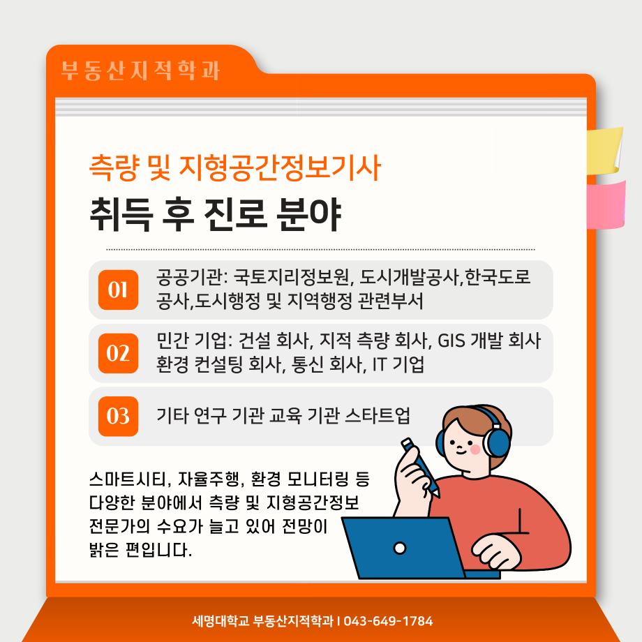본문 시작 홈으로 학과 소식 학과소개 취업 및 진로 언론 및 보도 학과 소식 대학원 홈페이지가이드 행사사진게시판 행사사진게시판 공지사항 일반자료실 강의자료실 부동산학보 동아리 행사사진게시판 페이스북 트위터 프린트 측량 및 지형공간정보기사 소개카트 부동산지적학과 2476 2024-12-09 측량 및 지형공간정보기사 소개입니다. 측량 및 지형공간정보기사에 관심있는 학생들은 참고하여 주세요. 목록 이전자산관리사 소개 카드입니다. 다음 (주)올포랜드와 1억5천 상당 소프트웨어 현물기부 협약체결 담당부서 : 부동산지적학과 담당자 : - 연락처 : 043-649-1784 최종수정일 : 2024-10-26 만족도조사 만족도 조사 이 페이지에서 제공하는 정보에 대하여 만족하시나요? 매우만족 만족 보통 불만족 매우불만족