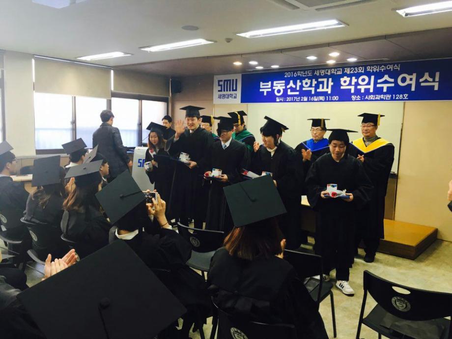 본문 시작 홈으로 학과 소식 학과소개 취업 및 진로 언론 및 보도 학과 소식 대학원 홈페이지가이드 행사사진게시판 행사사진게시판 공지사항 일반자료실 강의자료실 부동산학보 동아리 행사사진게시판 페이스북 트위터 프린트 2017년 학위수여식 전체관리자 8465 2017-04-14 2017 부동산학과 학위수여식 일시: 2017.02.16 목요일 10 :00 시 장소 : 사회과학관 128호 세명대 부동산학과 제7회 학위수여식을 마쳤습니다. 총 25명의 학생이 졸업을 하였으며, 부동산관련 직종 및 공간정보산업분야, 대학원 진학 등 을 하였습니다. 졸업생 여러분 모두 축하드립니다!! 목록 이전2017꿈설계학기 1일차 이전2017학년도 1학기 책임지도교수제 행사 개최 담당부서 : 부동산지적학과 담당자 : - 연락처 : 043-649-1784 최종수정일 : 2024-10-26 만족도조사 만족도 조사 이 페이지에서 제공하는 정보에 대하여 만족하시나요? 매우만족 만족 보통 불만족 매우불만족