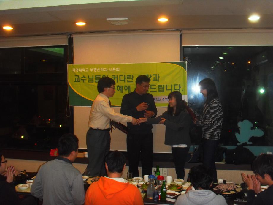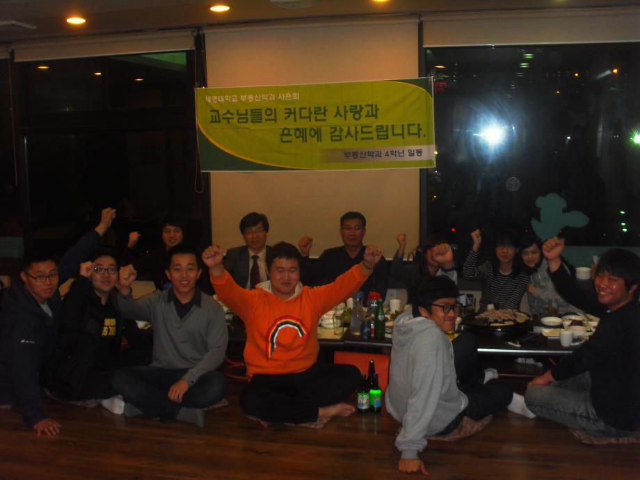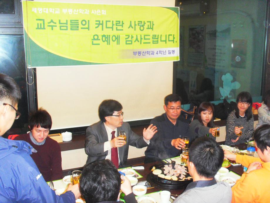 본문 시작 홈으로 학과 소식 학과소개 취업 및 진로 언론 및 보도 학과 소식 대학원 홈페이지가이드 행사사진게시판 행사사진게시판 공지사항 일반자료실 강의자료실 부동산학보 동아리 행사사진게시판 페이스북 트위터 프린트 부동산학과 제3회 사은회가 개최되었습니다. 전체관리자 7411 2011-11-11 부동산학과 제3회 사은회가 개최되었습니다. 이날 교수님과 조교님, 졸업예정자, 학생회장이 참석하여 교수님의 가르침에 감사드리고 지나온 4년간의 회고와 취업 및 미래 등에 관한 이야기를 나누며 즐거운 시간을 갖었다. 목록 이전지적박물관 현장견학(제천에서 2008년3월 22일) 이전견학 후 담당부서 : 부동산지적학과 담당자 : - 연락처 : 043-649-1784 최종수정일 : 2024-10-26 만족도조사 만족도 조사 이 페이지에서 제공하는 정보에 대하여 만족하시나요? 매우만족 만족 보통 불만족 매우불만족