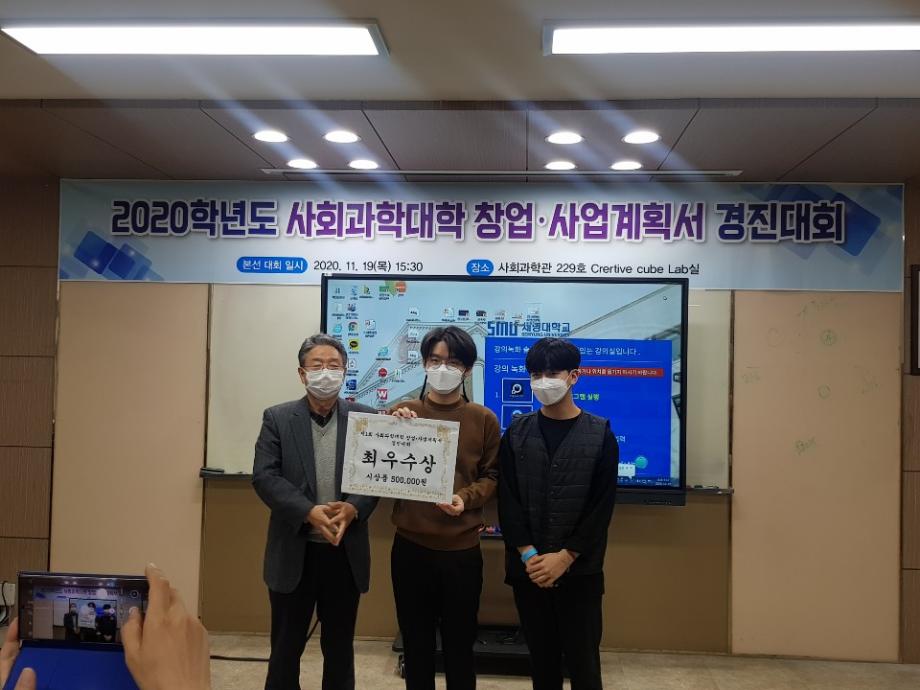 축! 제1회 2020학년도 사회과학대학 창업 사업계획서 경진대회 우수상 수상