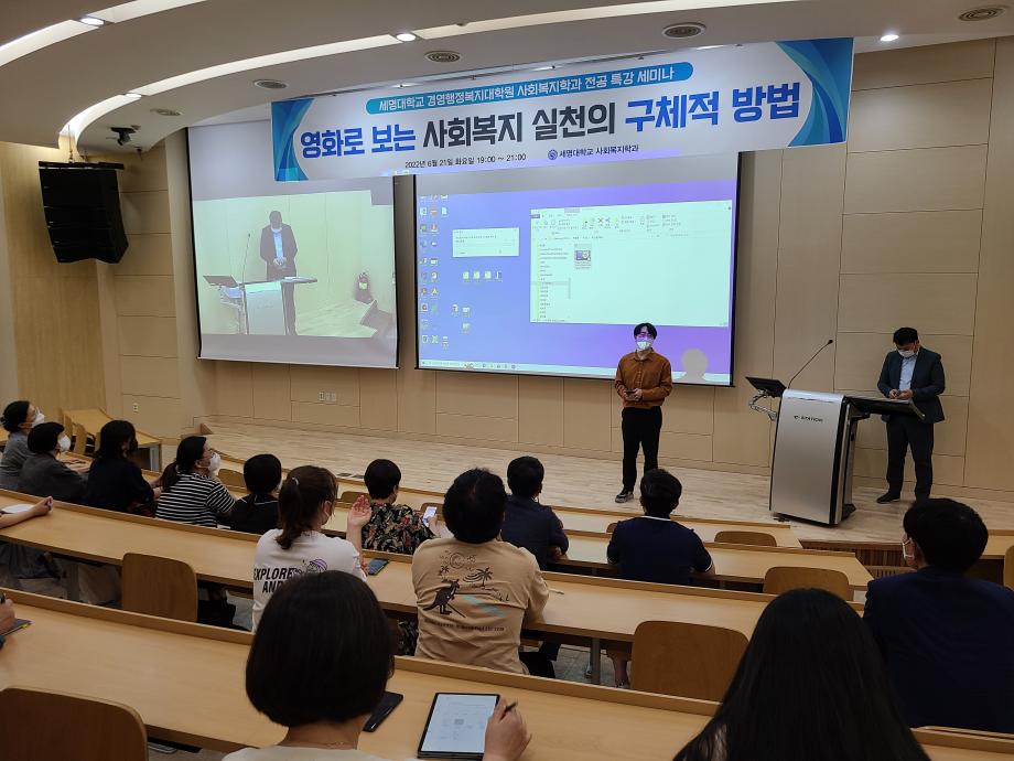 본문 시작 홈으로 커뮤니티 학과소개 교수소개 교육과정 현장실습 및 취업정보 커뮤니티 홈페이지가이드 학생 소통 광장 학과공지 학사일정 학생회 동아리 학생 소통 광장 포토갤러리 전공자료실 서식자료실 학생 소통 광장 페이스북 트위터 프린트 세명대학교 경영행정복지대학원 전공특강 세미나 사회복지학과 3045 2022-06-22 지난 6월 21일 18:30분부터 학술관 102호 제 2 컨퍼런스 홀에서 세명대학교 경영행정복지대학원 학생분들을 대상으로 전공특강 세미나를 진행하였습니다. 강연하시는 분은 현재 사회복지실천과교육연구소에 소장으로 있으신 이경국 소장님이시며, ' 영화(부산행)로 보는 사회복지실천'을 주제로 강연을 성공적으로 진행하셨습니다. 목록 이전세명대학교 사회복지학과 졸업 후 진로 장애인그룹홈편 다음 세명대학교 사회복지학과 졸업 후 진로 건강가정지원센터 편 담당부서 : 사회복지학과 담당자 : - 연락처 : 043-649-1799 최종수정일 : 2024-10-26 만족도조사 만족도 조사 이 페이지에서 제공하는 정보에 대하여 만족하시나요? 매우만족 만족 보통 불만족 매우불만족